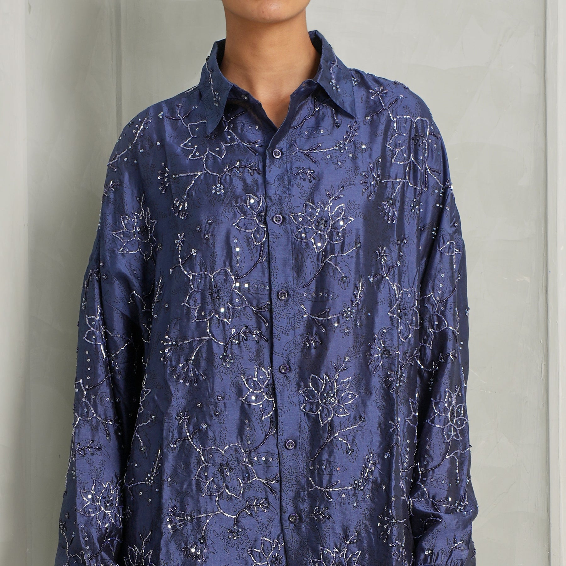 The Amaya Shirt from The PDKF Store is a contemporary take on a classic silhouette. Designed in silk, it features a two-piece collar and front button closure that lend a structured touch to its relaxed form. With full sleeves and an oversized fit, it offers comfort with function. Style it with…