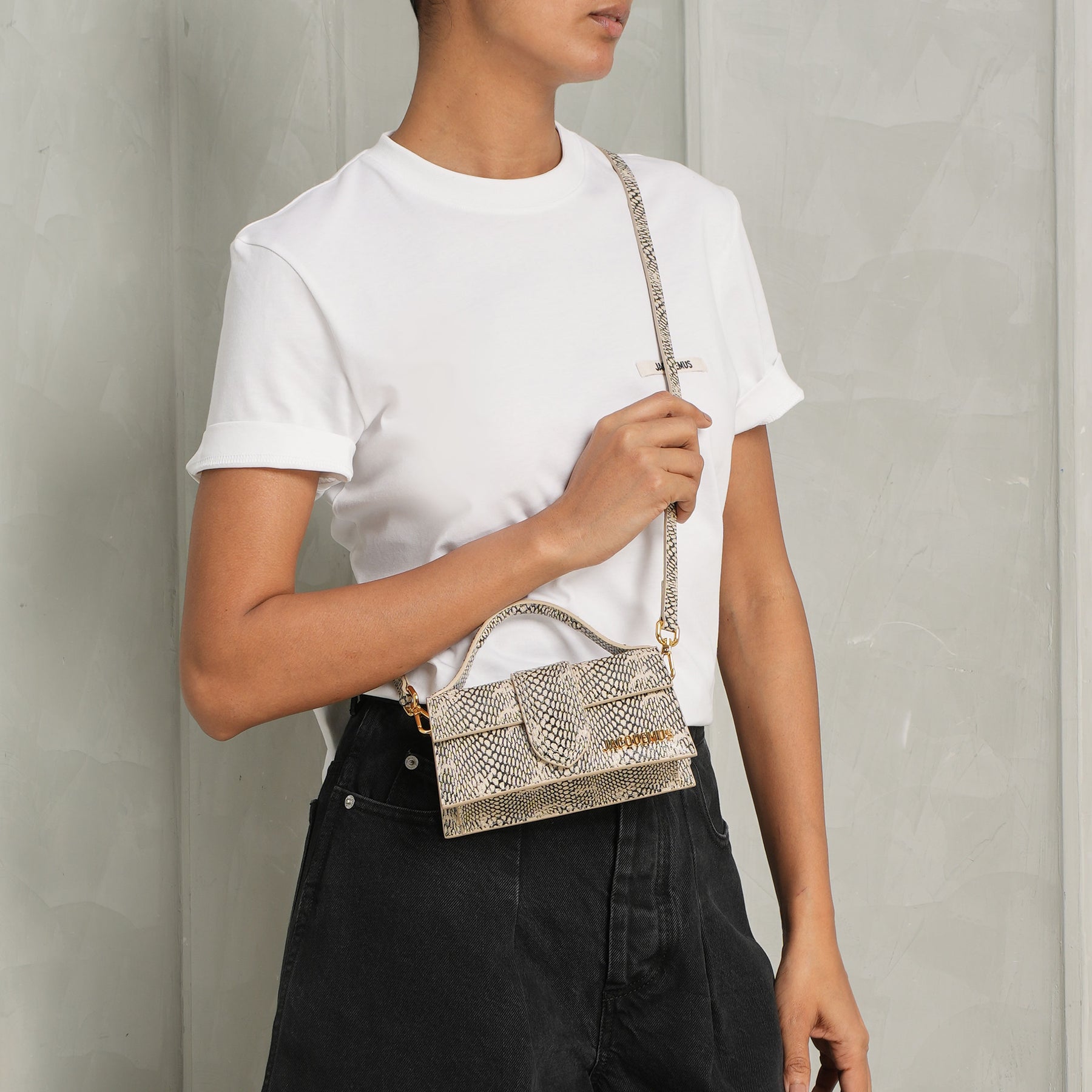 Meet the iconic Le Bambino Bag from Jacquemus ,crafted from leather, this structured bag features a padded top handle paired with a magnetic flap tab closure. With its detachable strap, lobster clasp, and patch pocket, this bag boasts both form and function. This bag is polished with topstitched details and the designer's iconic gold metal hardware - perfect for elevating every ensemble.