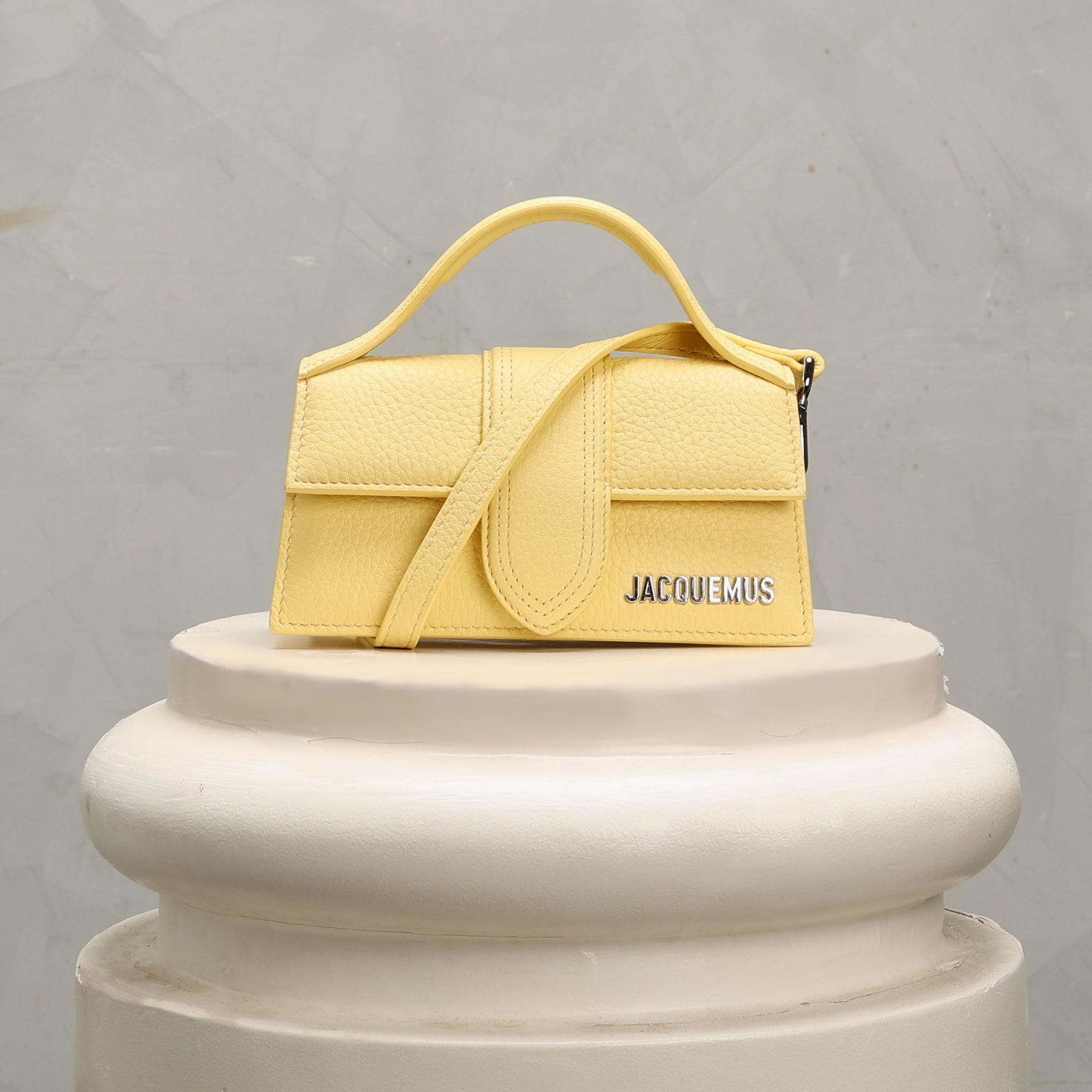 Meet the iconic Le Bambino Bag from Jacquemus ,crafted from leather, this structured bag features a padded top handle paired with a magnetic flap tab closure. With its detachable strap, lobster clasp, and patch pocket, this bag boasts both form and function. This bag is...