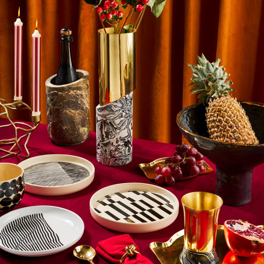 The Black Pencil Grid Holiday Plate from Eeshaan is a clean, structured design defined by fine black pencil-like grid lines. The pattern is intentionally imperfect - adding a hand-drawn charm that feels effortless and modern. Ideal for contemporary holiday tables, this plate pairs beautifully with minimal décor and layered dinner settings alike.