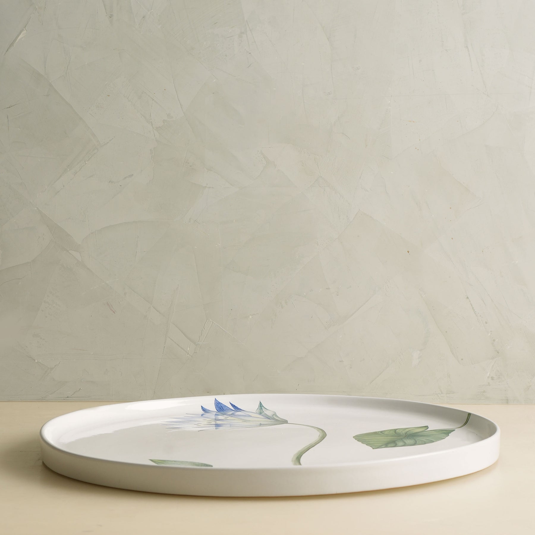 Khanoom's Blue Lily Thai Plate captures the serenity of still waters and the grace of blooming lilies. Handcrafted with intricate detailing, its surface features soft blue hues that radiate calm. Designed for versatility, it transitions effortlessly from everyday dining to special occasions - timeless, refined, and deeply rooted in artistry.