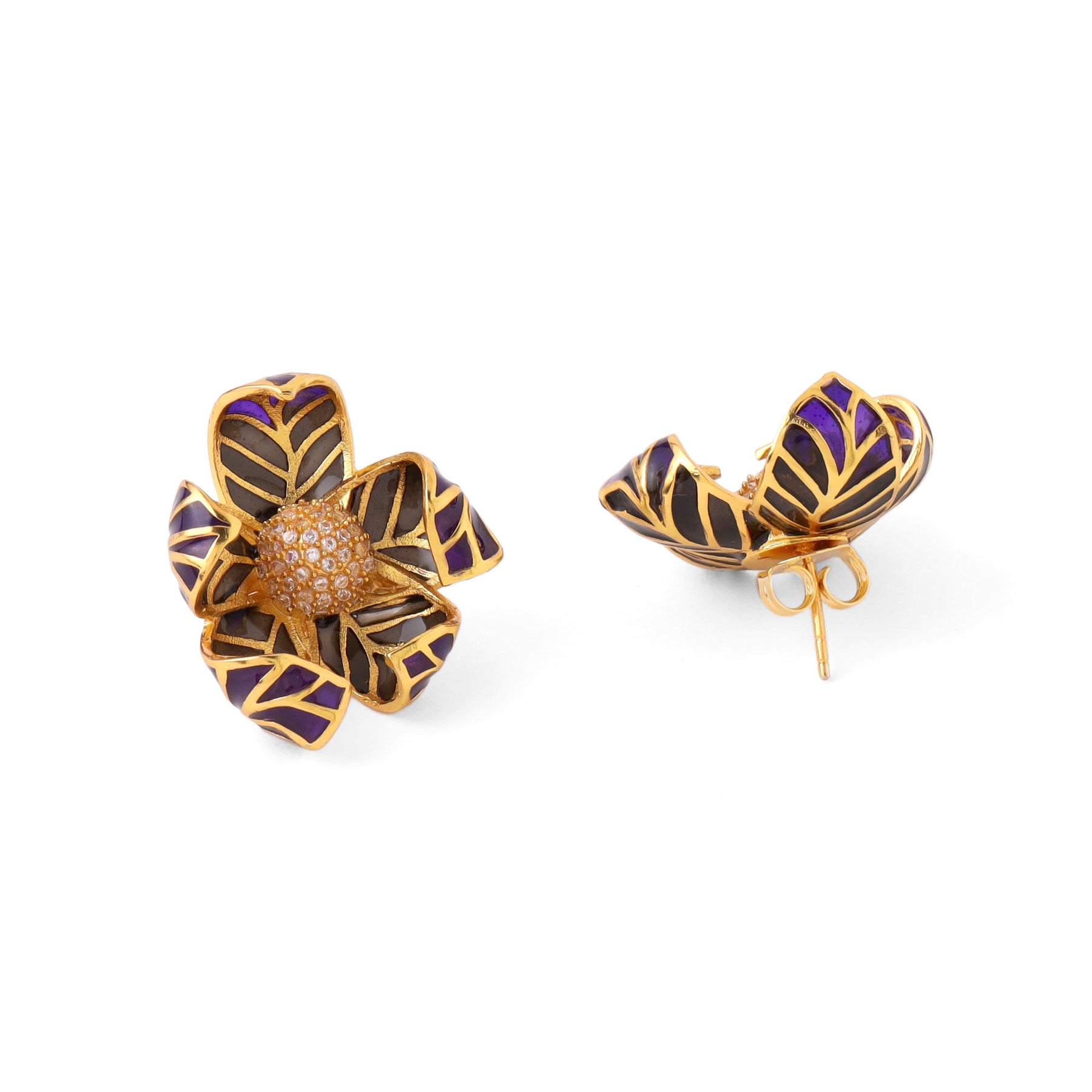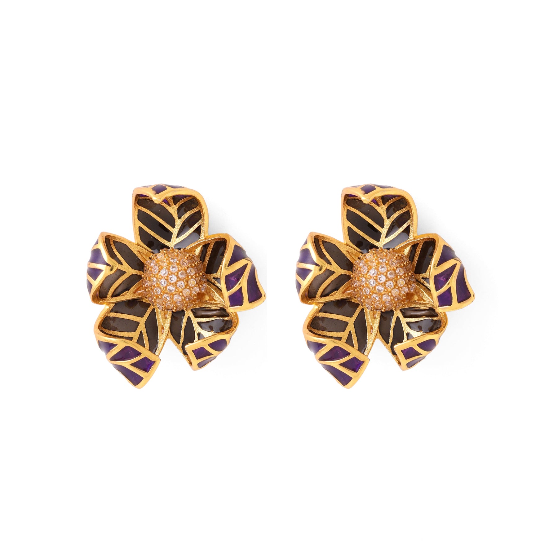 Azga Garden is inspired by vintage floral art, brought to life through fretwork and enamel detailing. The Blume earrings echo the form of a blooming flower and are handcrafted by artisans in Jaipur, celebrating thoughtful design and fine craftsmanship.