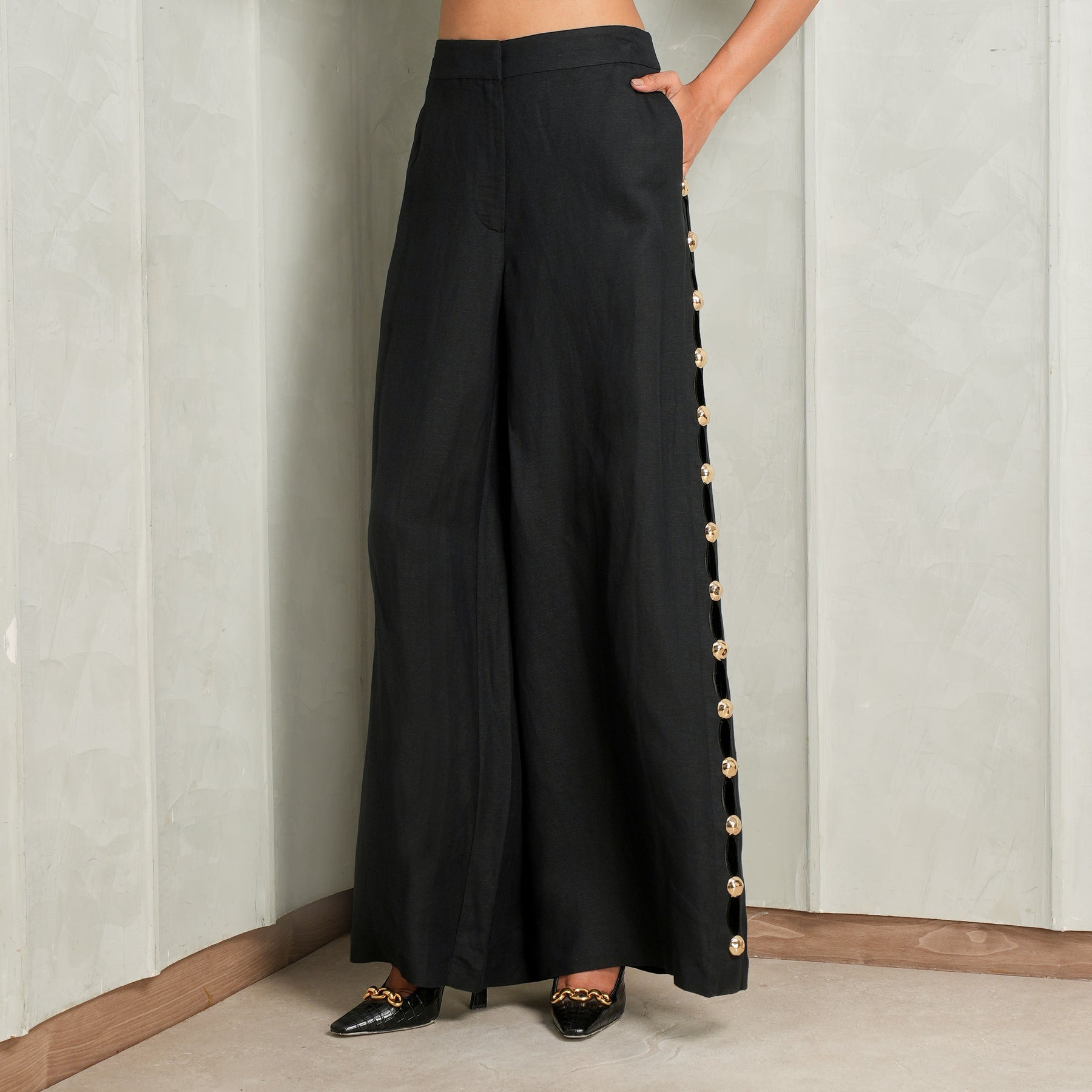 How To Wear Cayman Studded Linen Wide Leg Pant