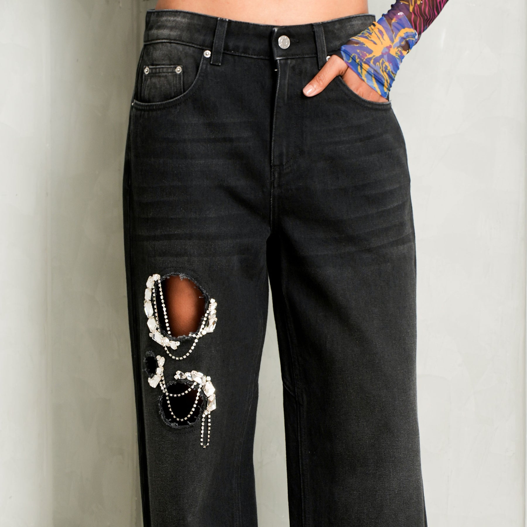 Crystal Chain Cutout Relaxed Jean