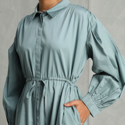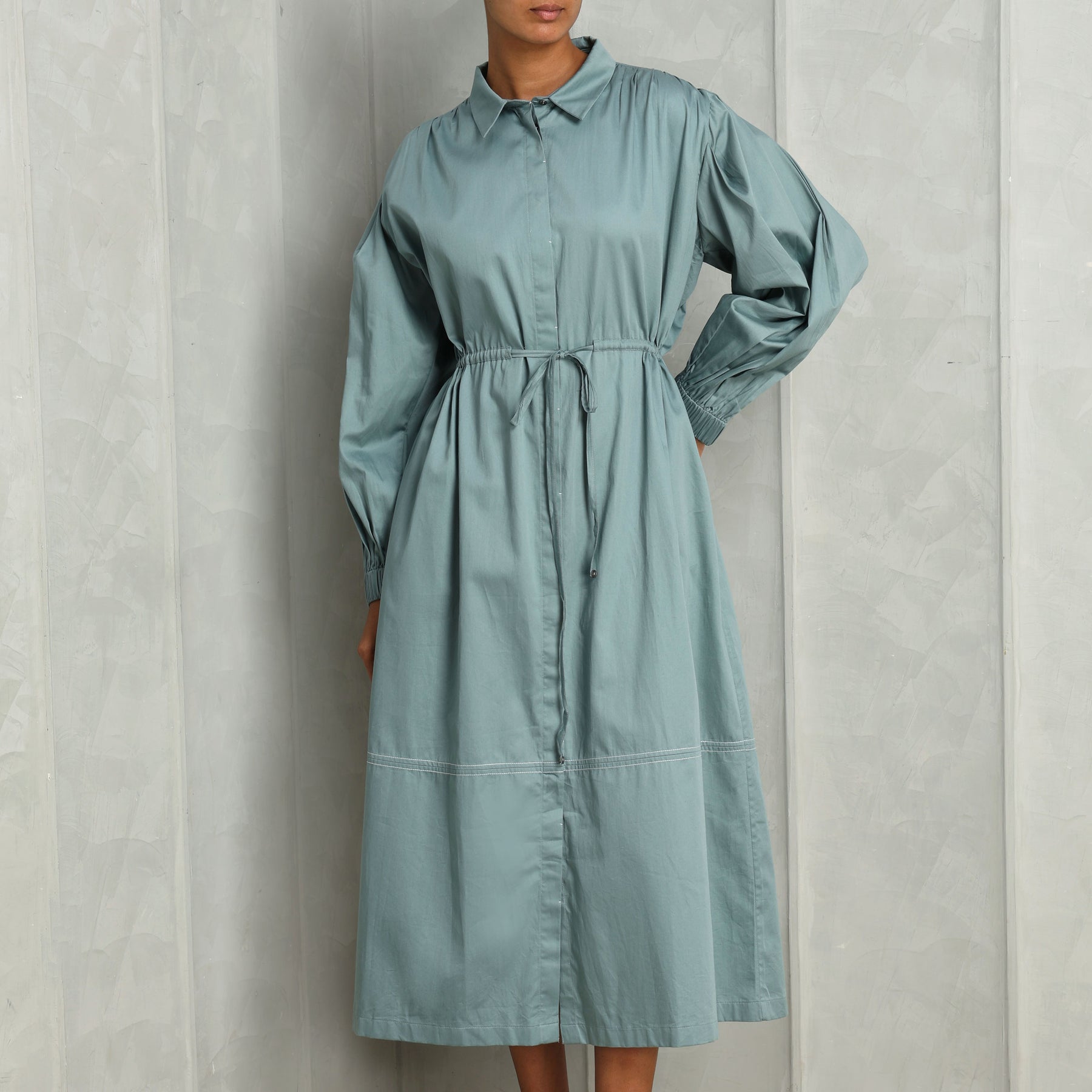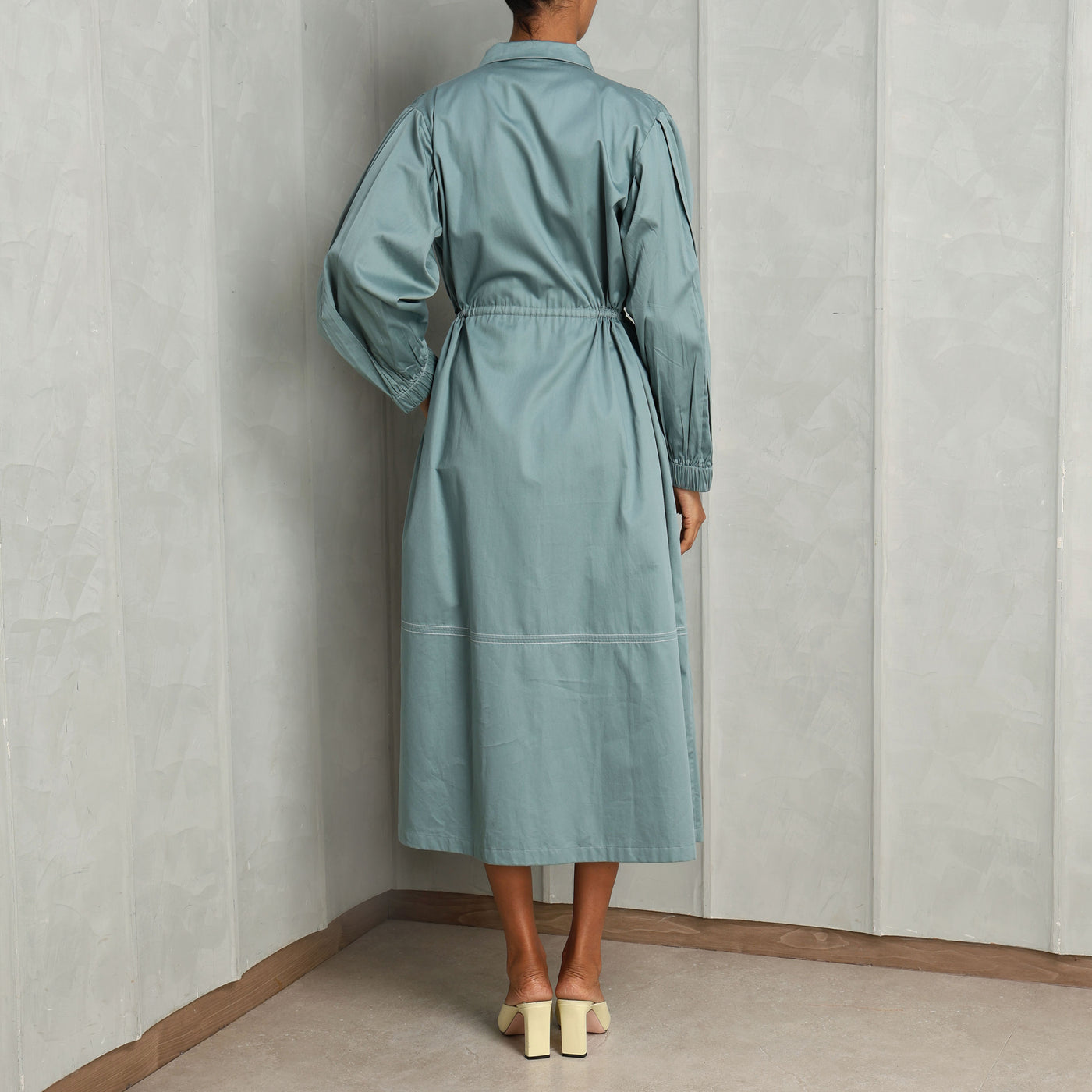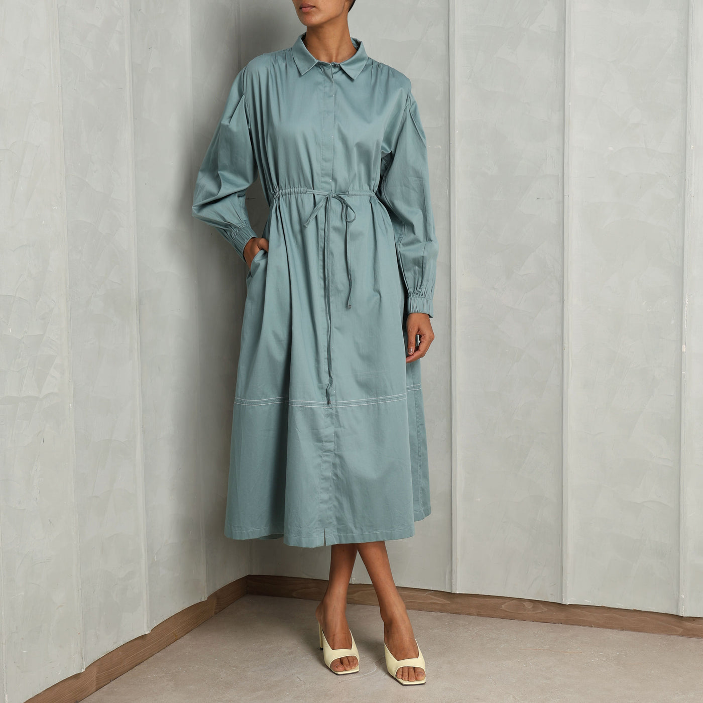 Crafted in cotton poplin and dyed a moody teal, this Drawstring Dress from Teal is cinched at the waist with a drawstring detail for adjustable shape. Relaxed yet refined, it’s a quiet showstopper.