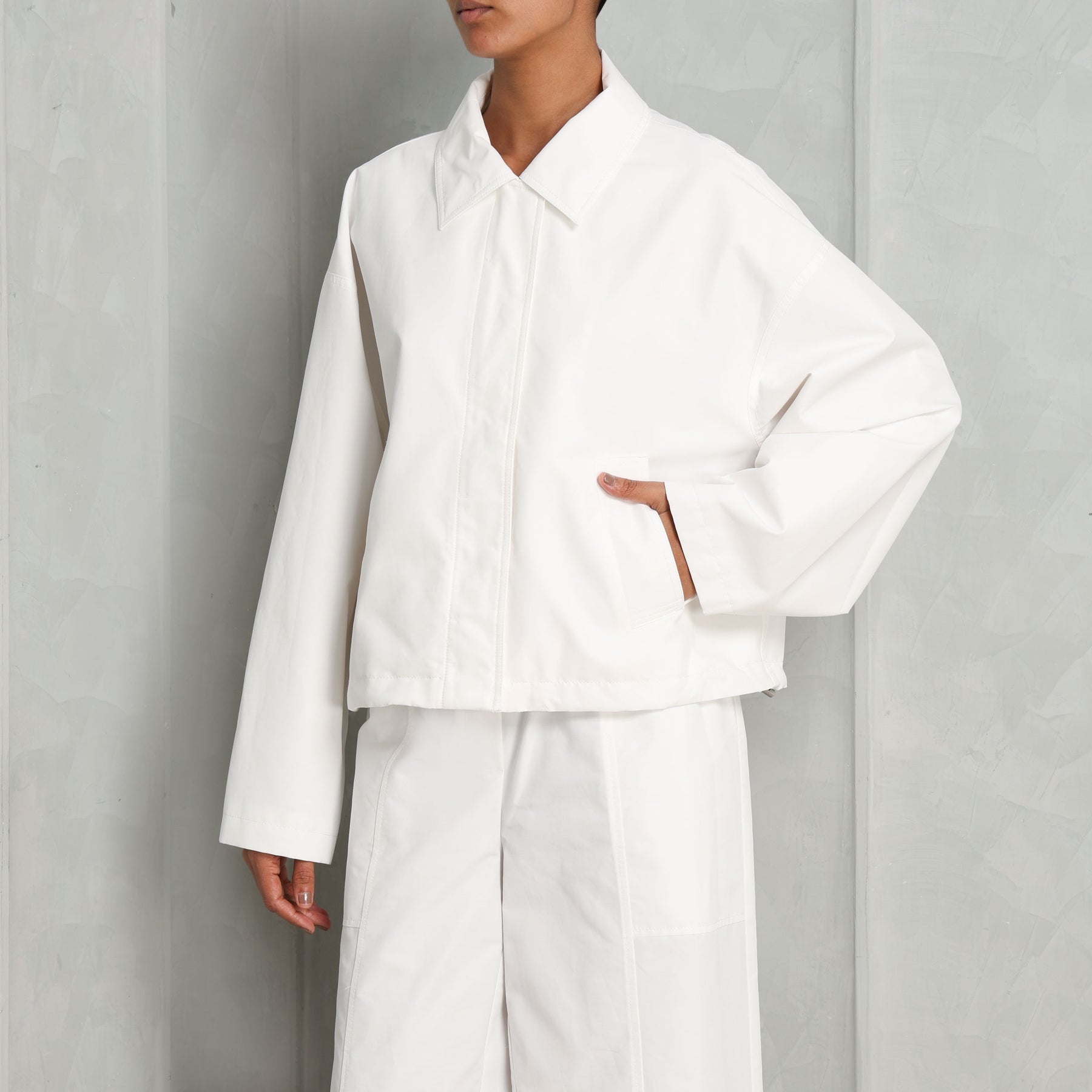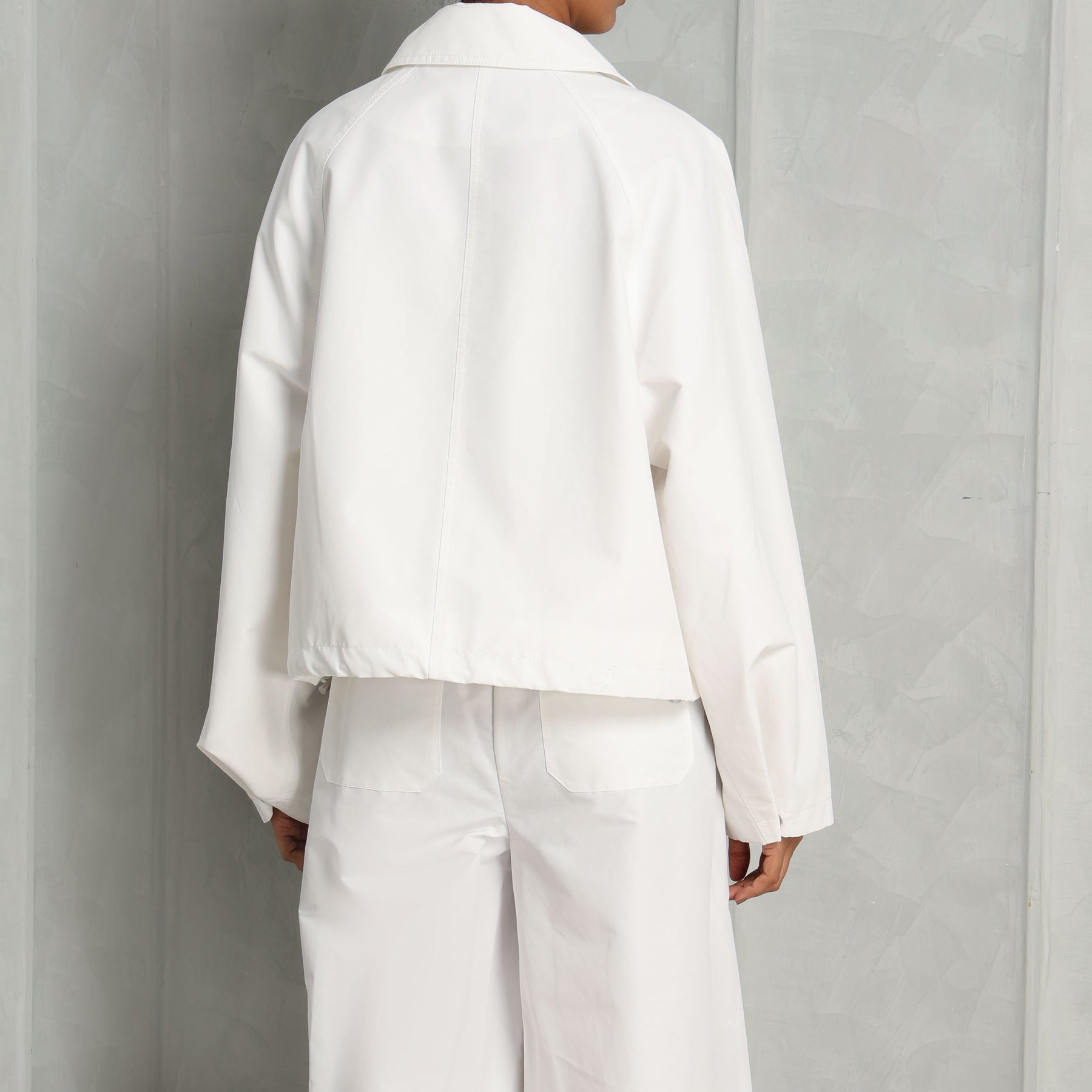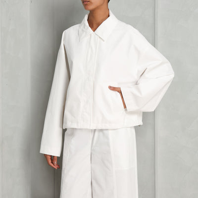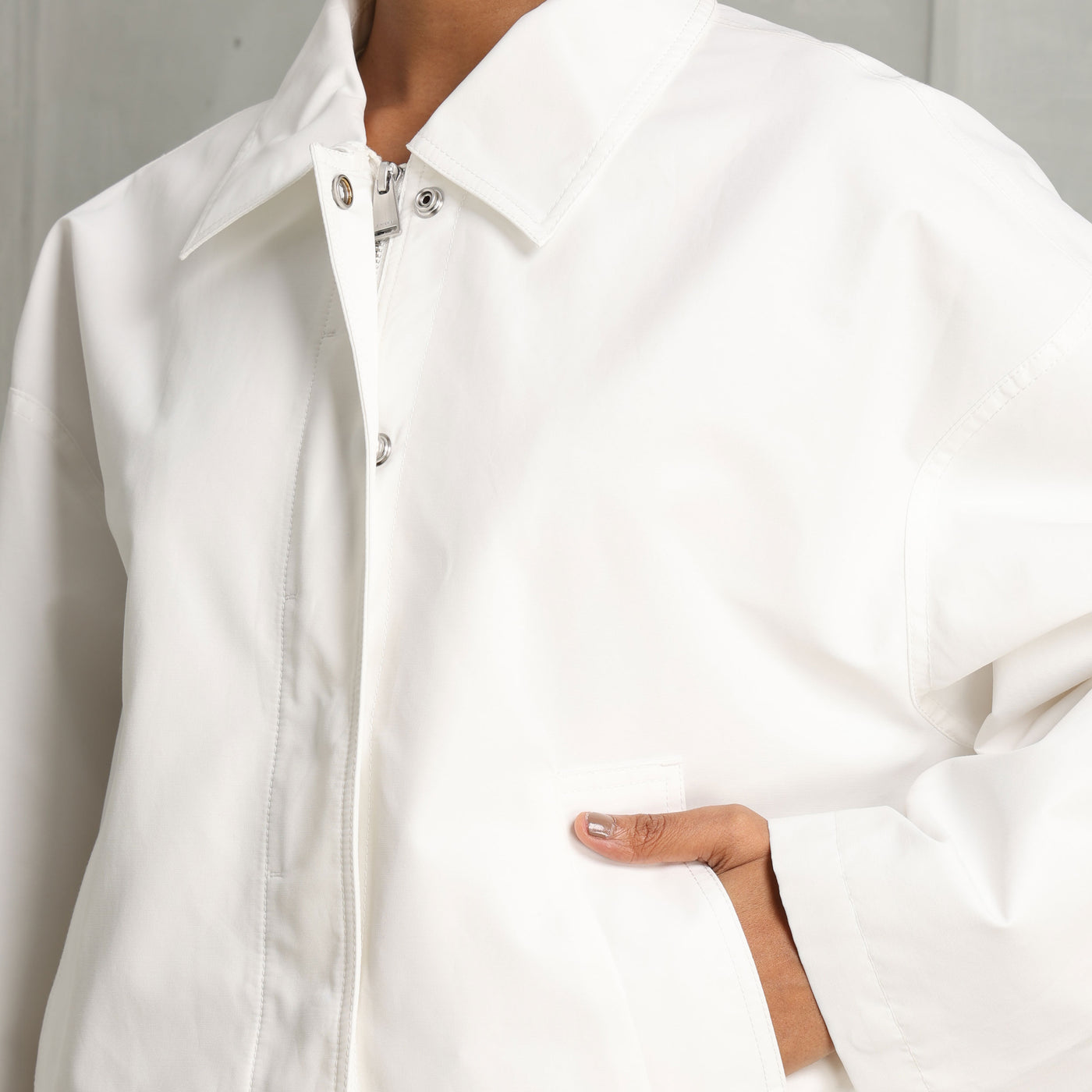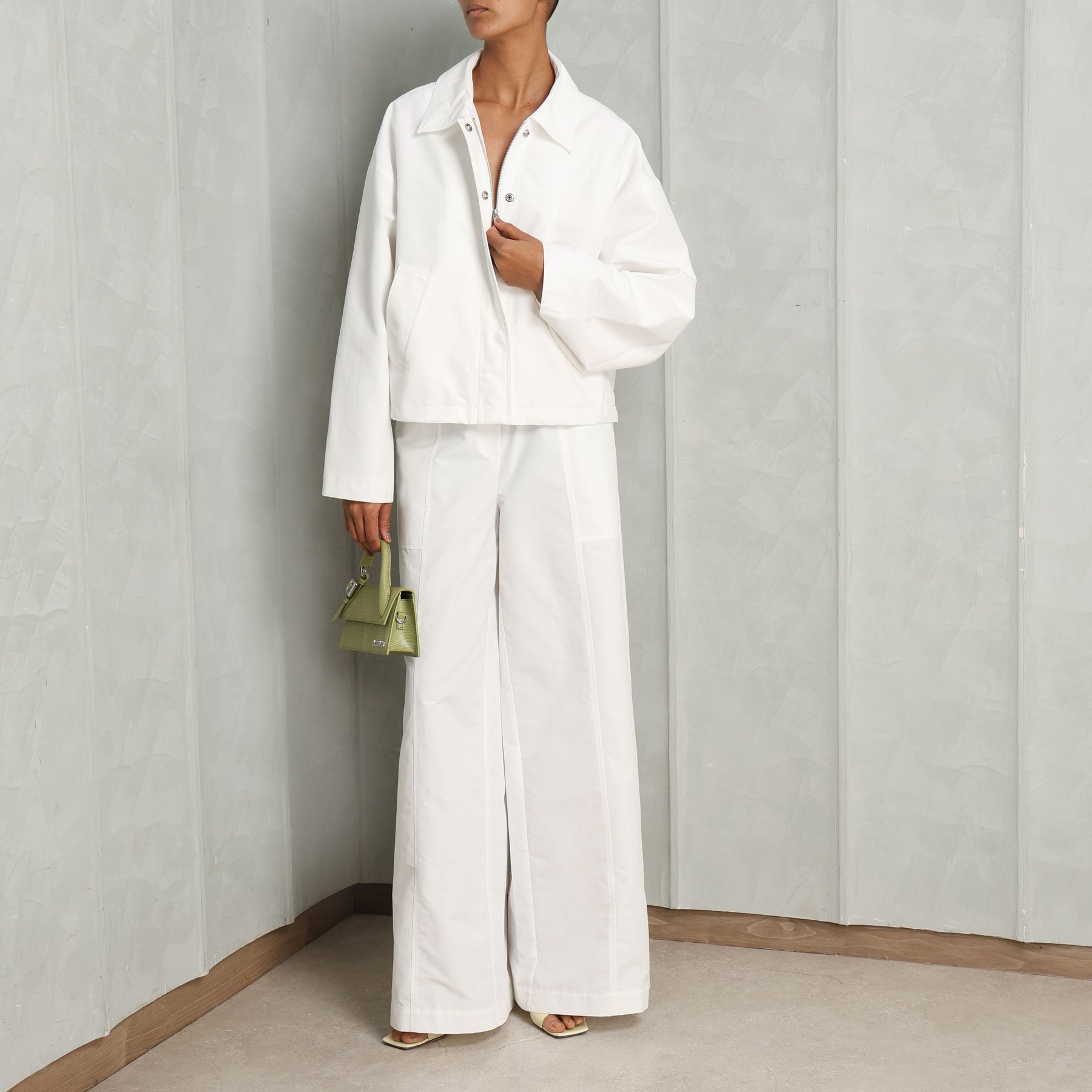 Tailored in crisp cotton, the Everli Cotton Jacket from Simkhai refines the cropped silhouette