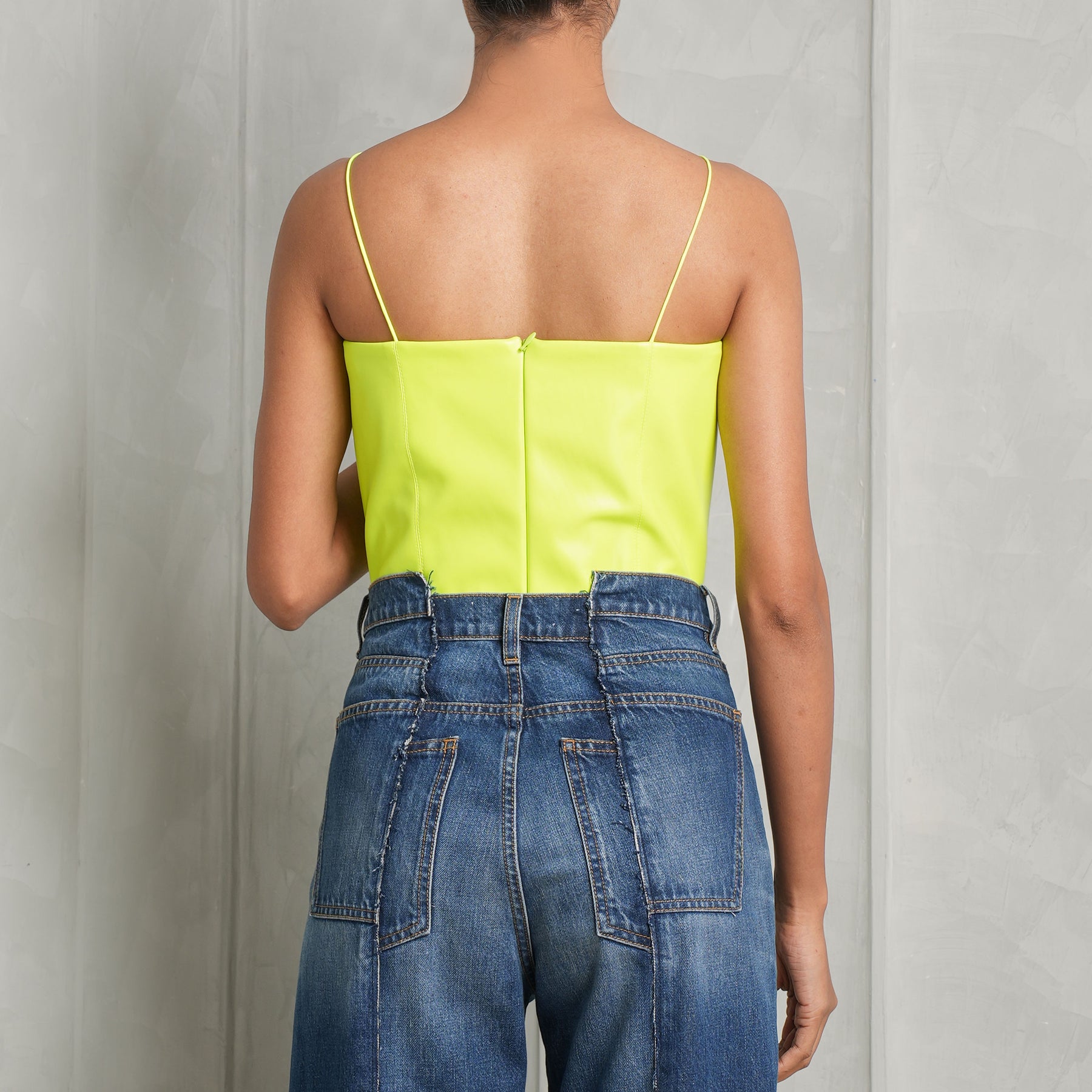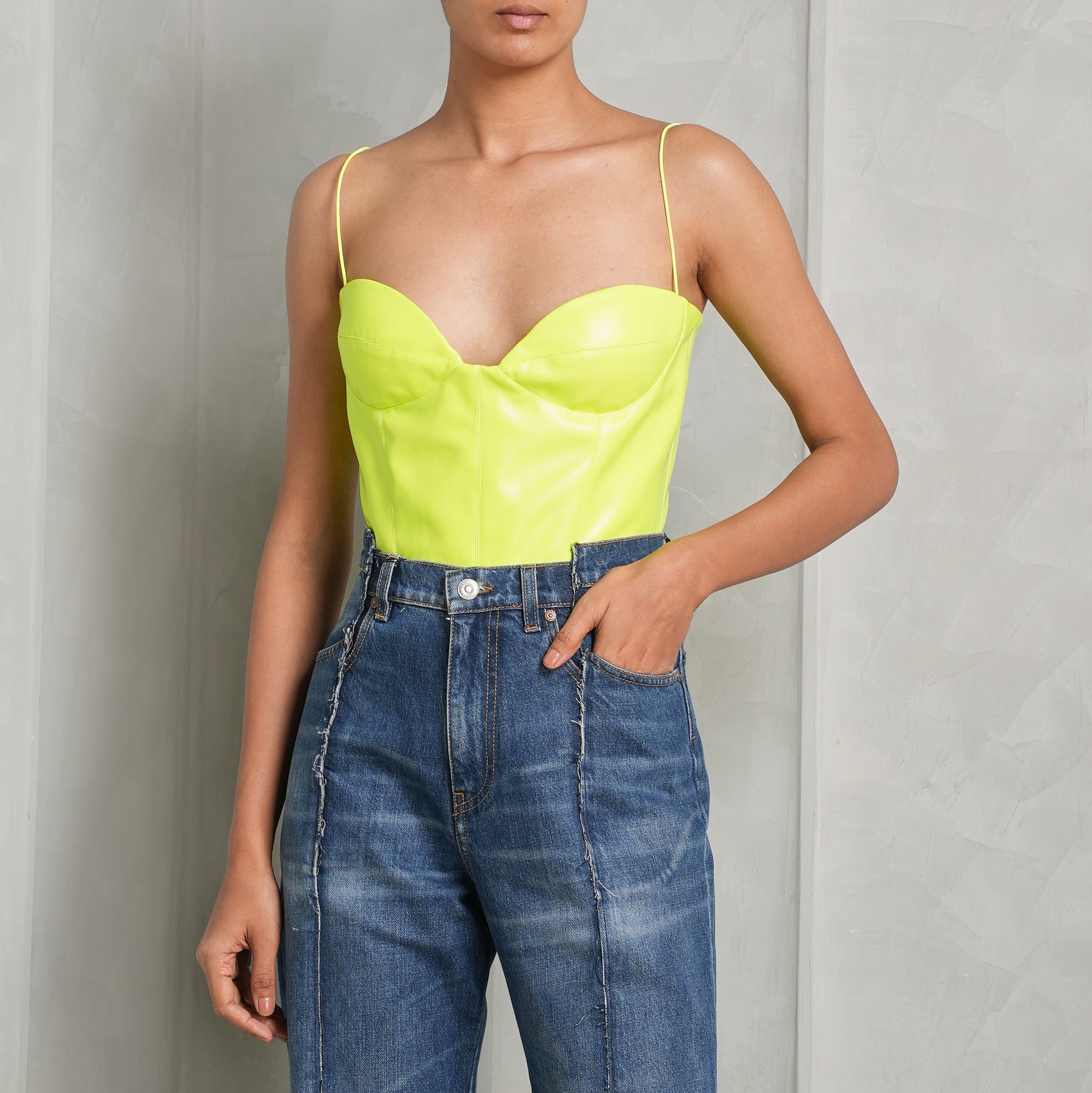 Harmonioulsy marrying contemporary silhouettes and femininity, Alex Perry's Halston Sweetheart Neck Bodysuit is crafted from a neon yellow-hued faux leather. This Alex Perry bodysuit features a flattering silhouette, delicate spaghetti straps and a a sweetheart neckline. Le Mill recommends pairing this Alex Perry bodysuit with Victoria Beckham's Deconstructed Slim Jeans, Saint Laurent's Kate Small Shoulder Bag and Bianca Sandals.