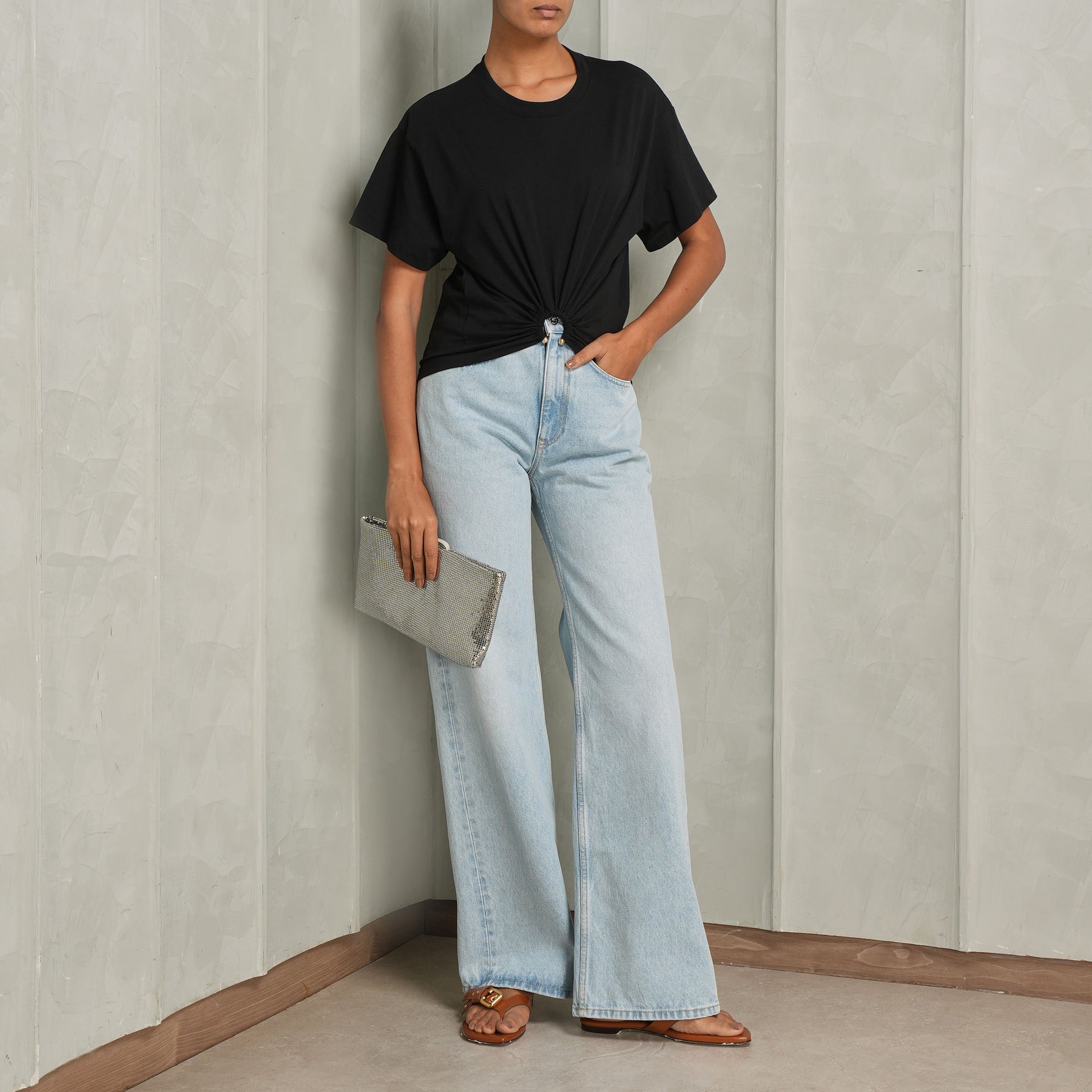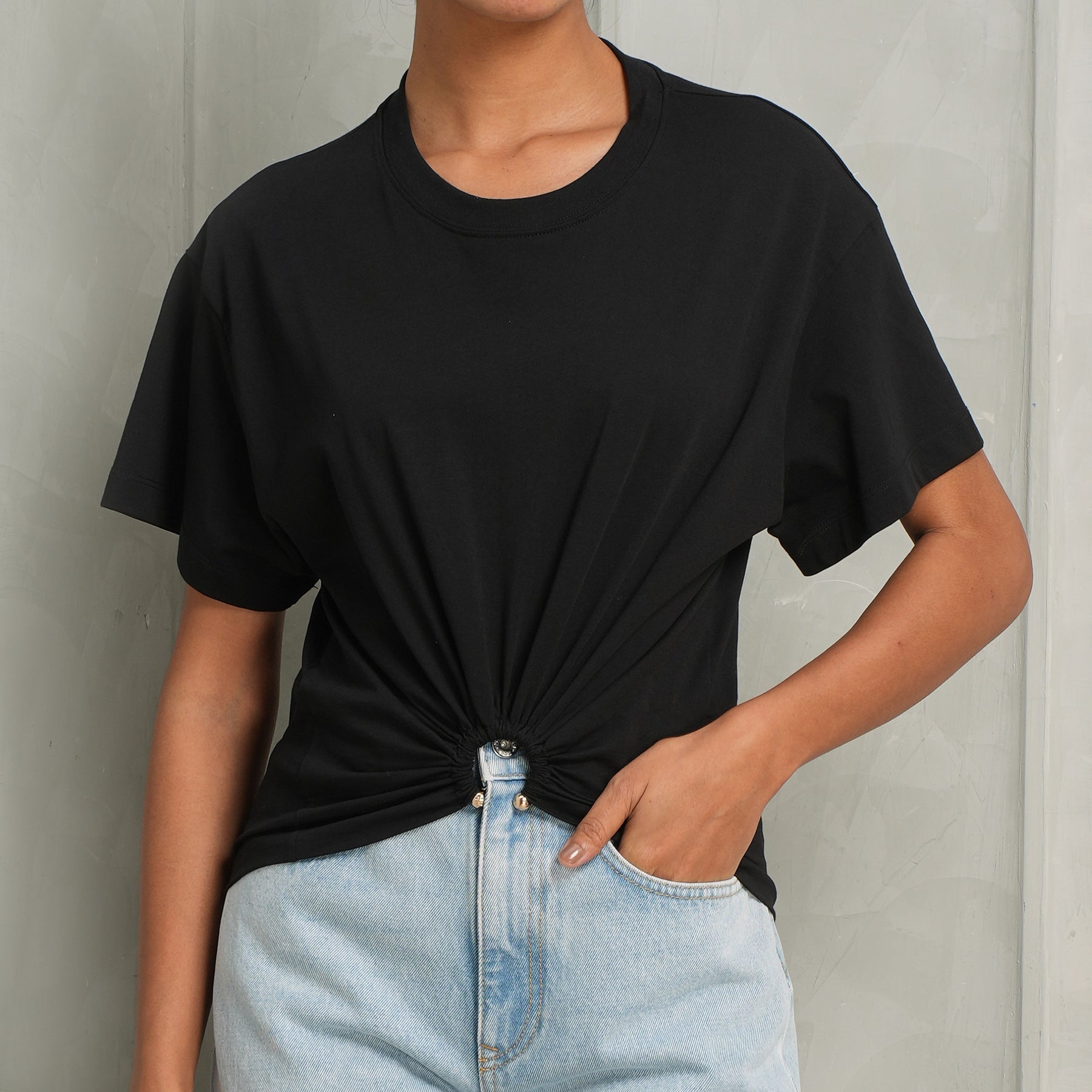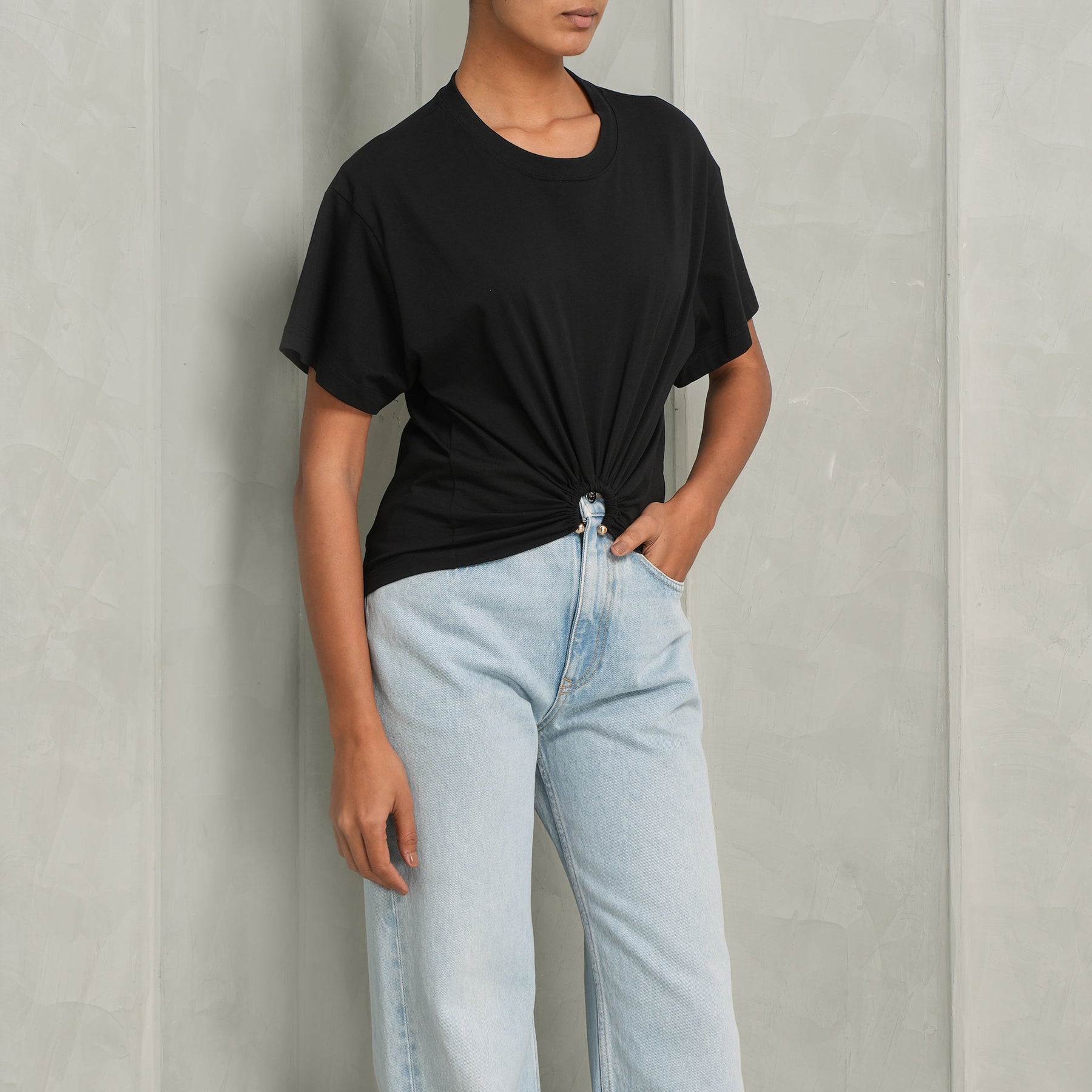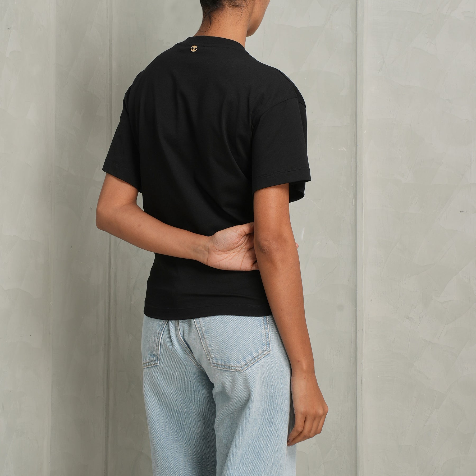 A timeless essential - meet Rabanne's Haut Short Sleeve Top in black. Crafted in a sleek, minimalist silhouette that flatters with quiet confidence. Designed for versatility, this top serves as an elevated foundation piece - effortlessly transitioning from day to evening with understated ease. Style this with Denim Pantalon Jeans and Silver Mesh Pouch from Rabanne.