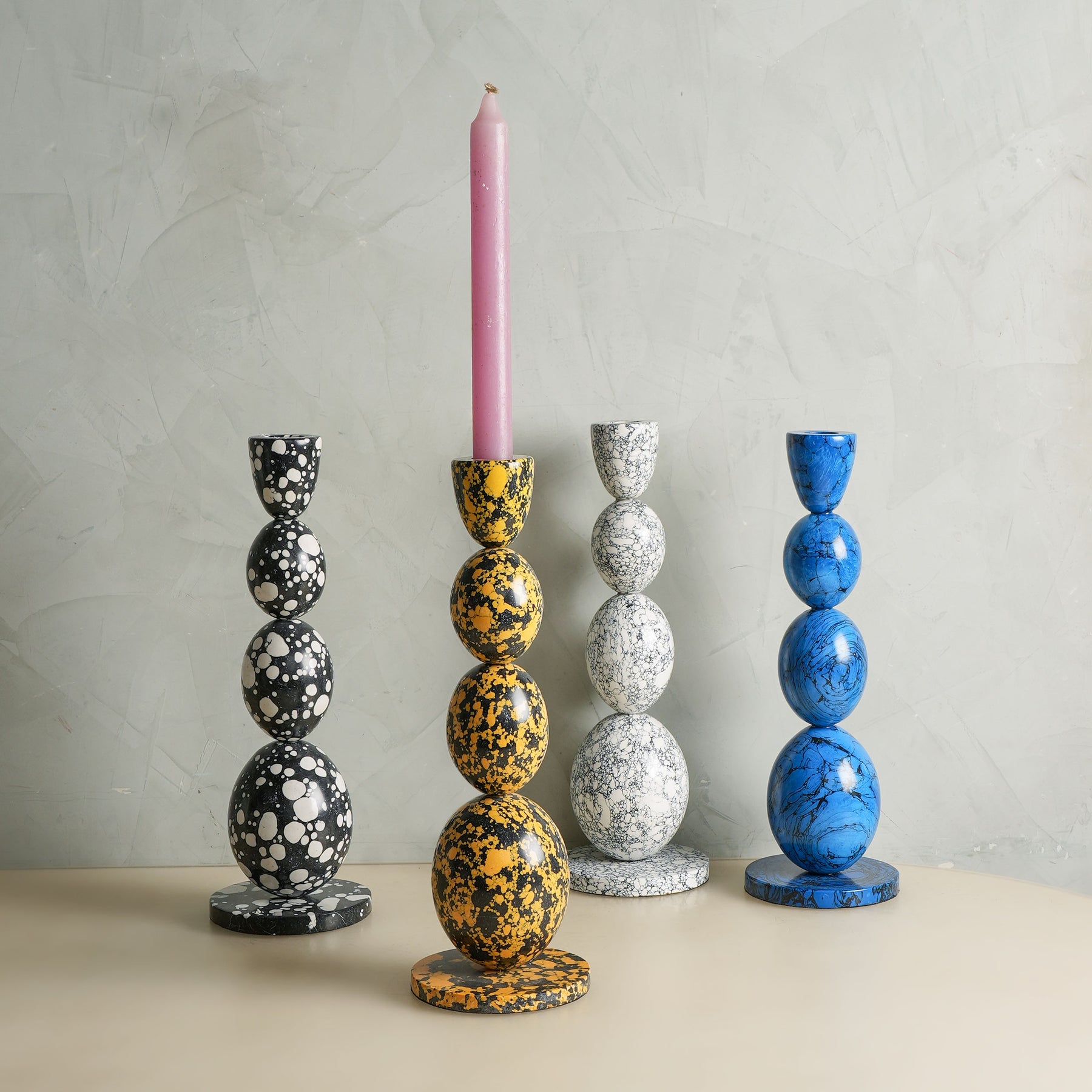 The Lingam Candle Stand from Eeeshaan is shaped with a smooth, upright form and finished in a bold black-and-yellow mix. Its clear contrast and simple profile make it easy to style on shelves, dining tables, or within a grouped candle setup.