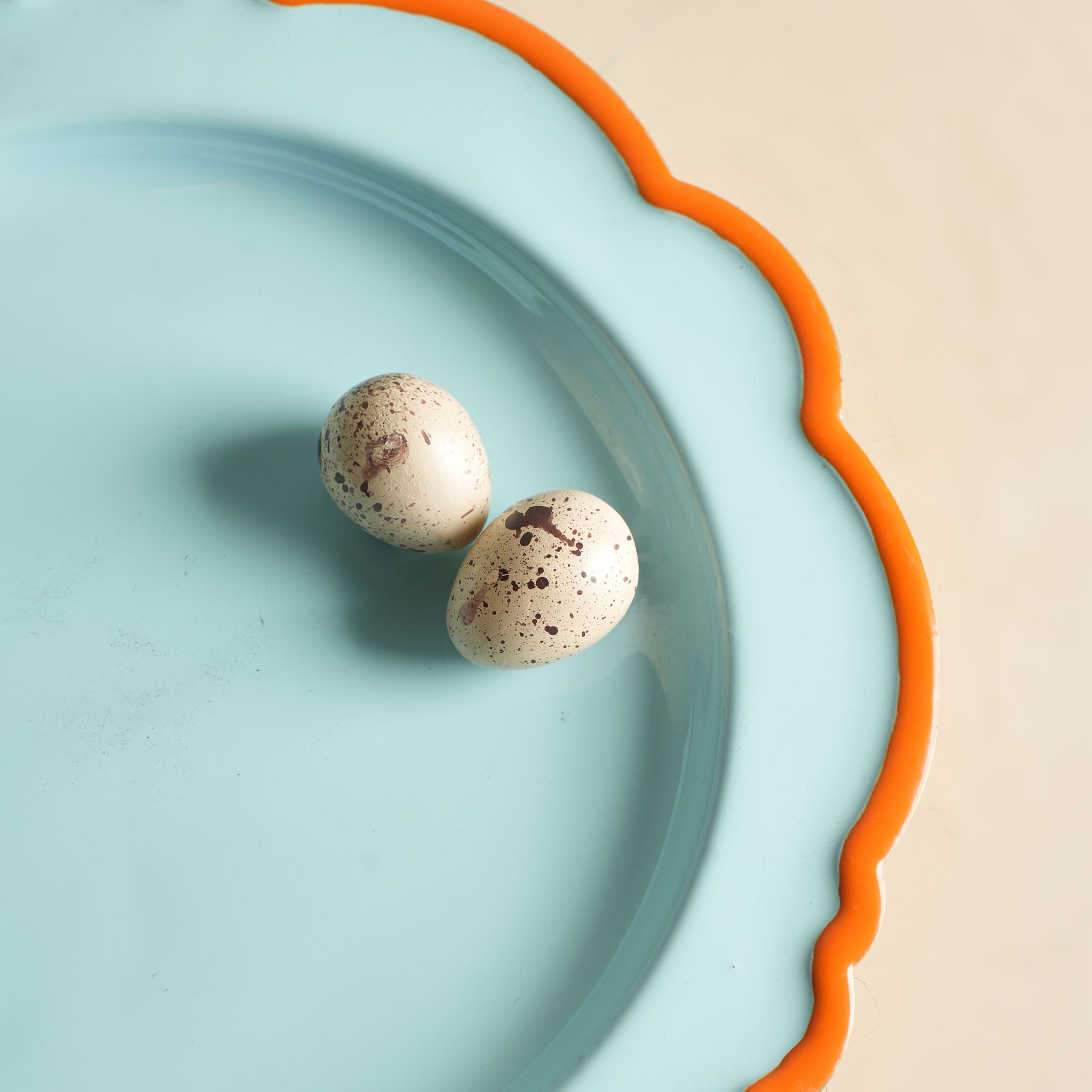 Handcrafted entirely in brass and finished with a glossy enamel coat, the Moonflower Dinner Plate Set from Patchou brings quiet charm to the table. The pairing features an eggshell-white and red quarter plate, adding a subtle dialogue of calm and color. Each piece is shaped by hand, reflecting the charm of artisanal craft and the timeless allure of brass.