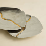 The Eeshaan Off Grid Side Plates are characterized by an irregular grid pattern. These side plates bring a modern, hand-drawn spontaneity to the table. Their clean form and graphic detailing make them ideal for layered table styling.