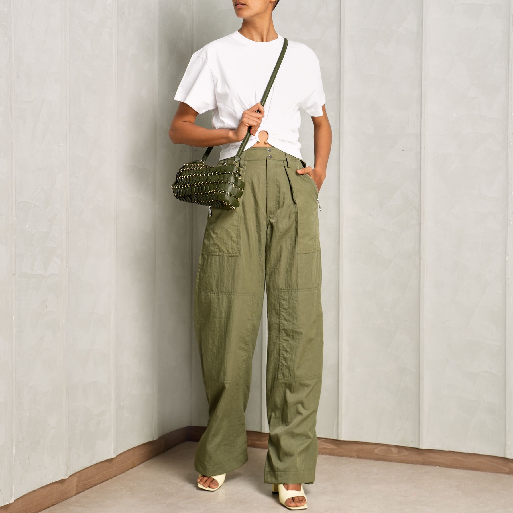 The Pantalon Pant from Rabanne is designed with a relaxed, tailored silhouette that balances structure and ease. Cut with a high-rise waist and soft pleating through the front, the trousers fall into a fluid, straight leg that elongates the frame. Finished with side pockets and clean detailing, it offers a refined yet effortless approach to modern dressing. Style this with...
