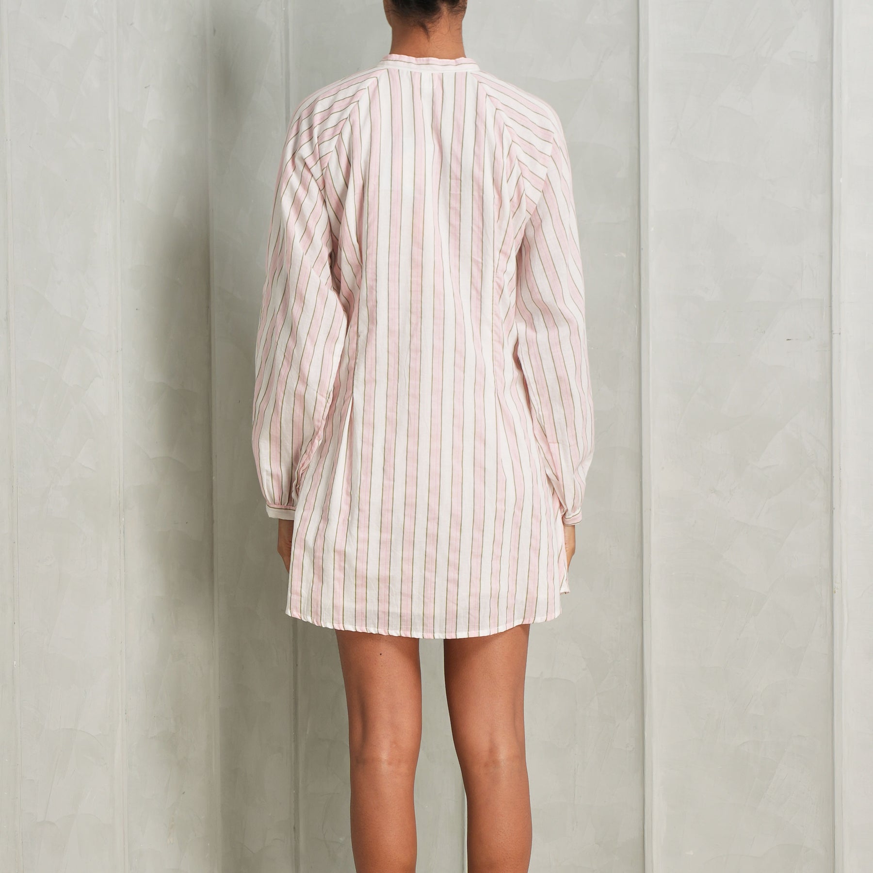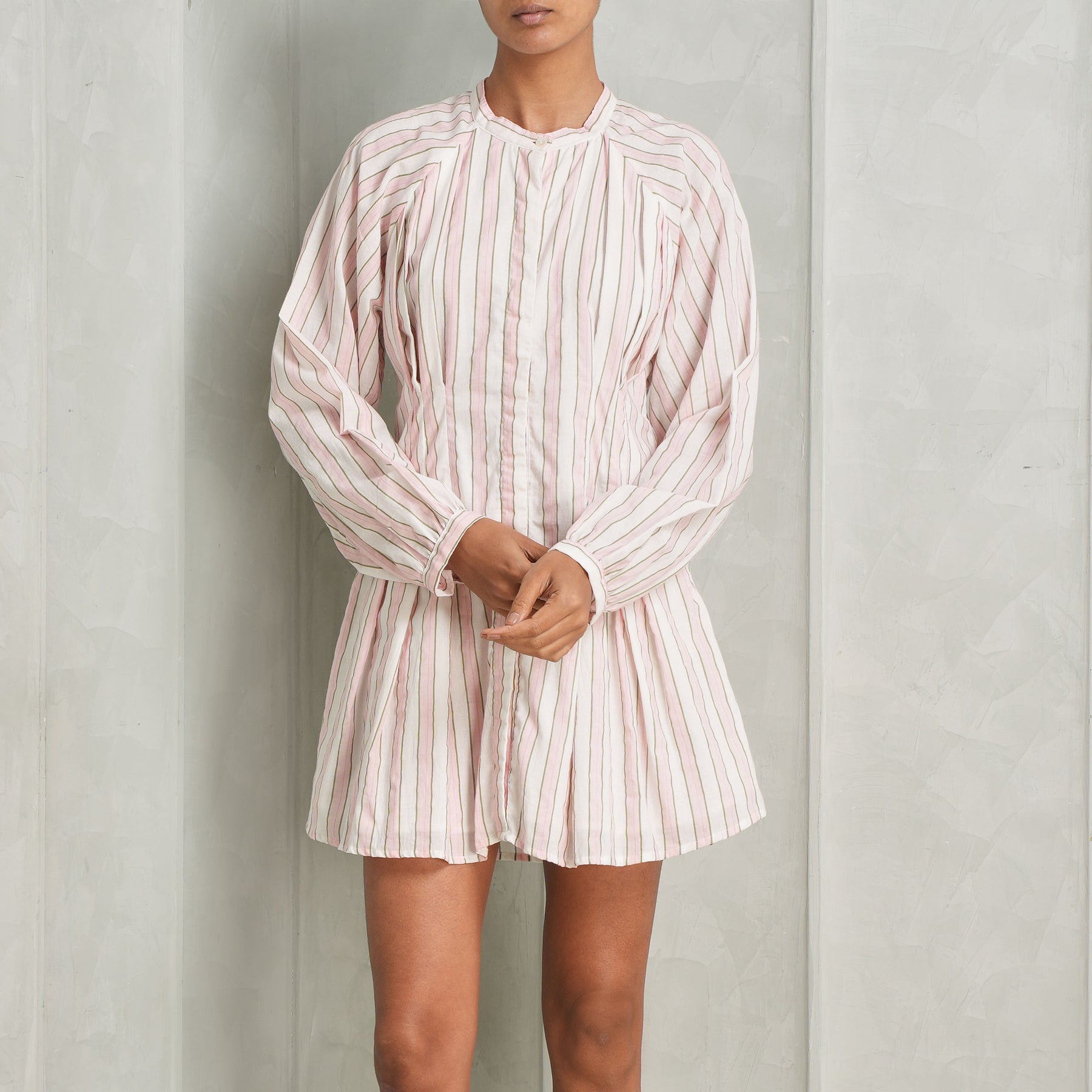 The Pichola Dress from The PDKF Store is crafted from striped cotton and features a classic fit-and-flare silhouette. This dress features a clean hidden button placket, full sleeves, and a concealed side zip for a seamless finish. Lined with soft mulmul for enhanced comfort, this piece blends structure with everyday ease - perfect for refined daywear and effortless transitions. Style this with...