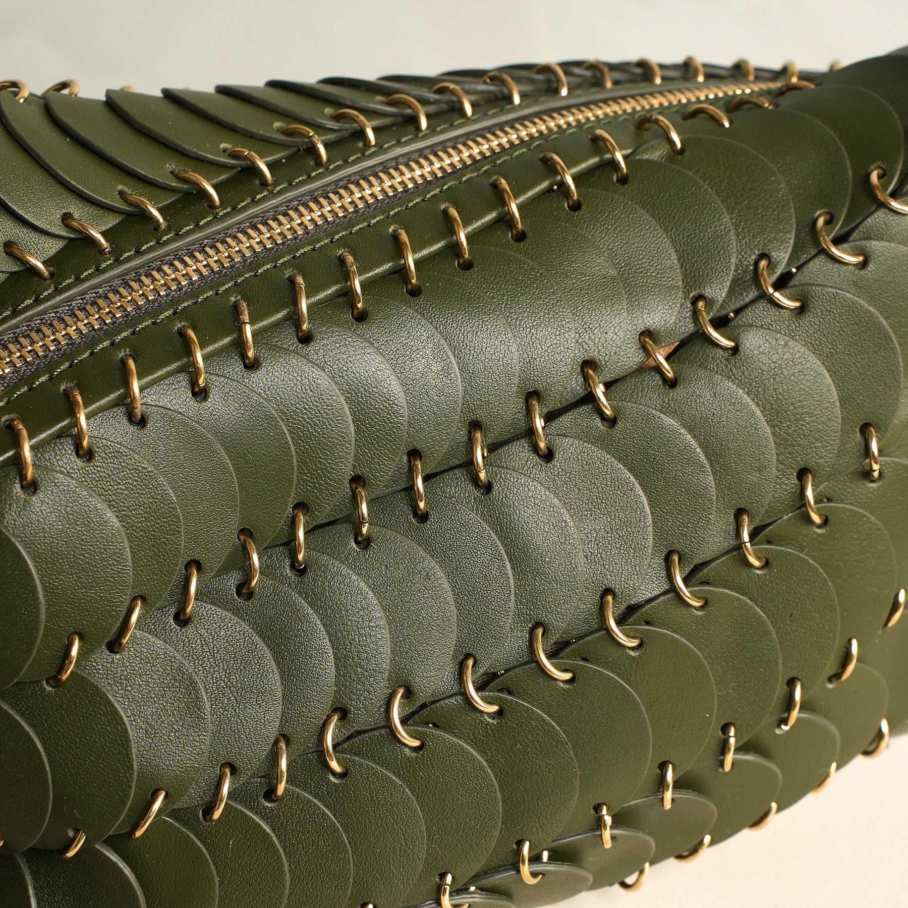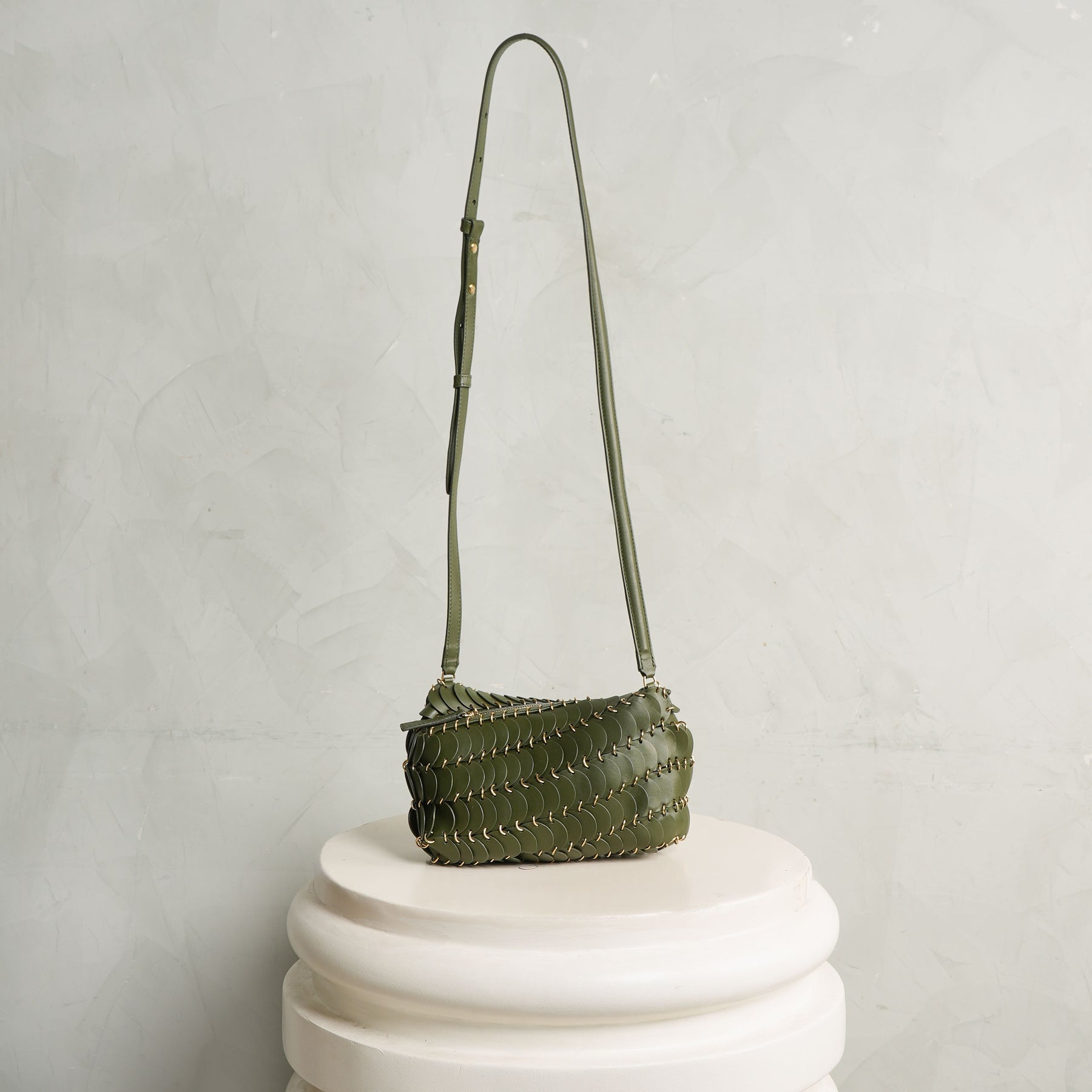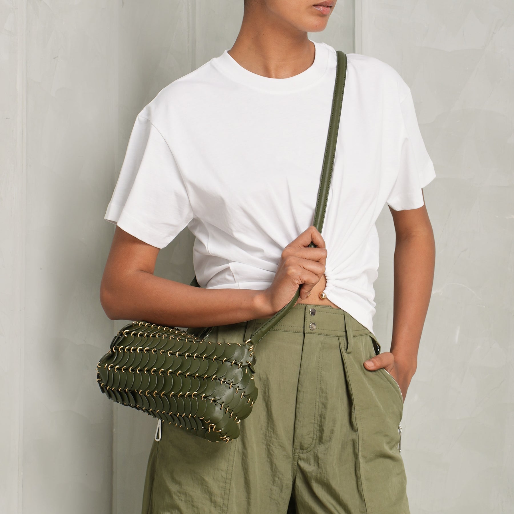The Rabanne Sac A Main Leather Shoulder Strap is a refined everyday accessory with a contemporary edge. Crafted in green, it features a clean, structured silhouette ideal for effortless wear. Subtle detailing and a polished finish make it both practical and elevated, transitioning seamlessly from day to evening.