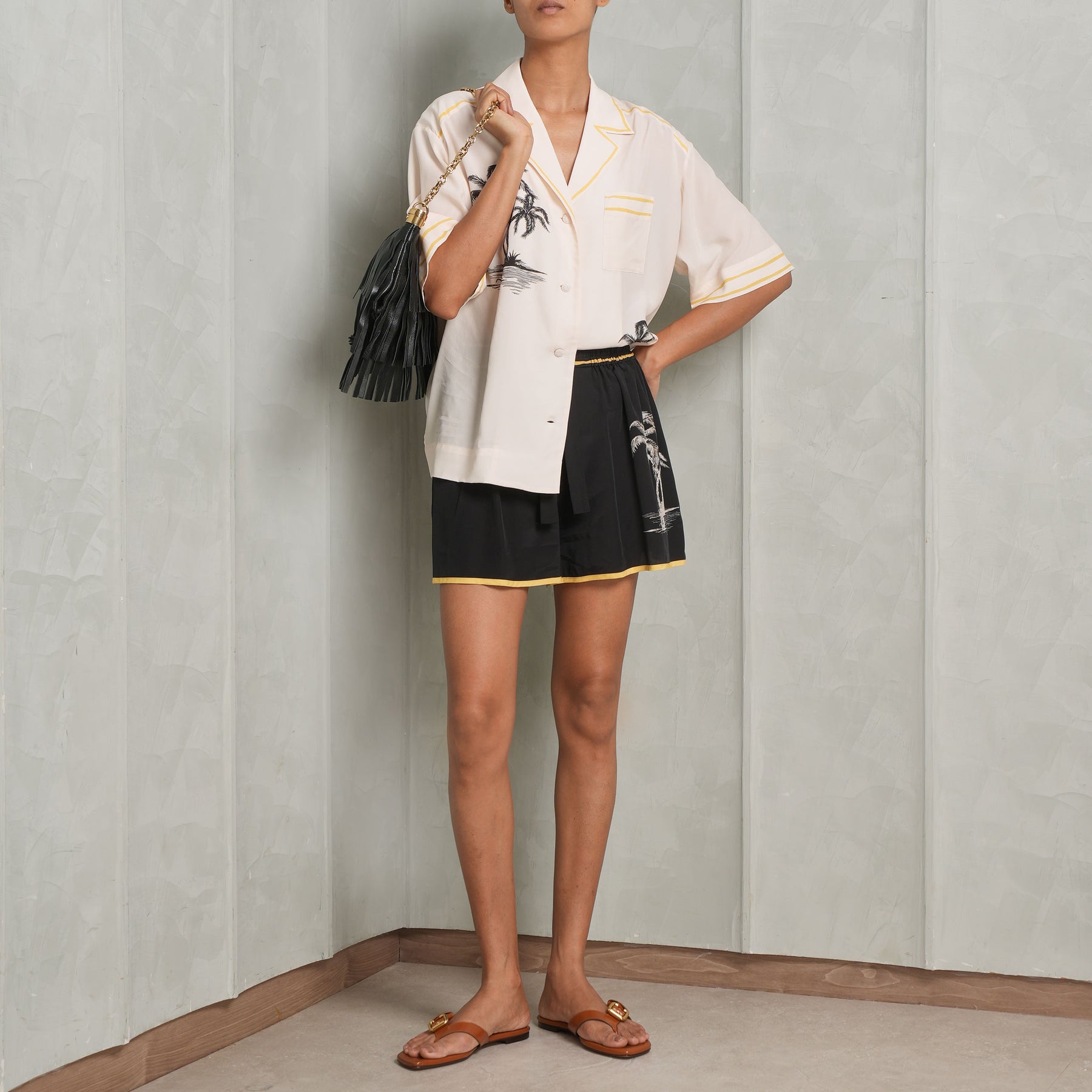 Meet Zimmermann's Short Sleeved Shirt - a classic placement print piece. Crafted from a silk blend, this shirt features a classic collar paired with a box pleat at the center back and buttons down the center front. For an easy summer look, pair this with Running Short from Zimmermann and Small Foulard Shoulder Bag from Chloé.