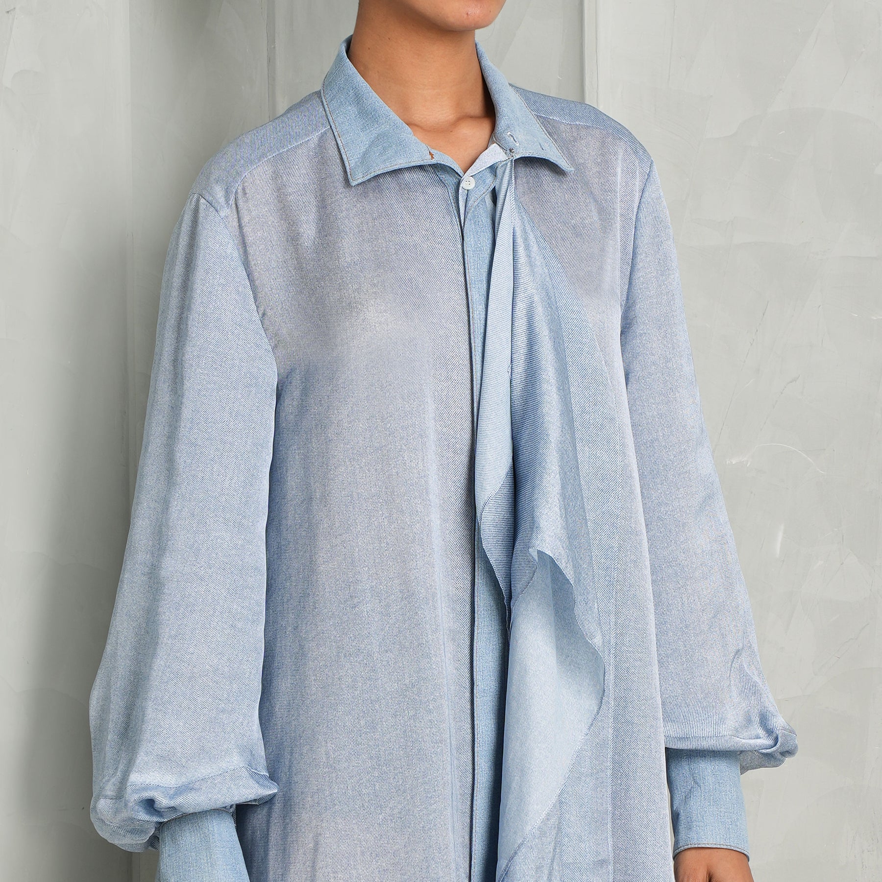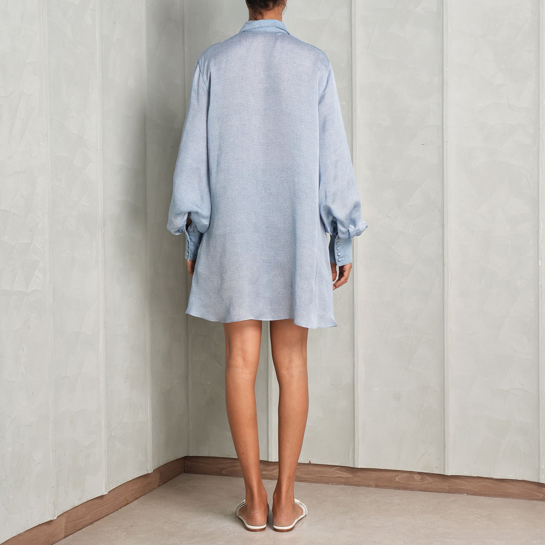 The Sacai Striped Denim Dress boasts a relaxed approach to denim, reimagined with refined ease. This blue striped dress drapes effortlessly, designed for movement and everyday versatility. The soft denim finish brings a casual edge, while the fluid silhouette keeps the look polished - a laid-back staple that still makes a statement. Perfect for sun-drenched days, city strolls, or a weekend away. Pair it with Flamenco bag from Loewe.