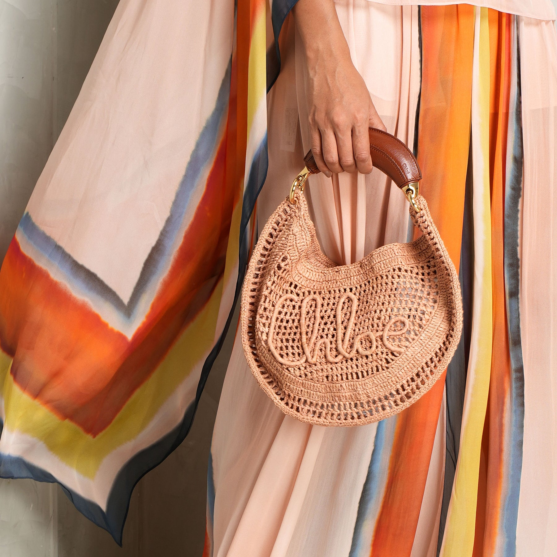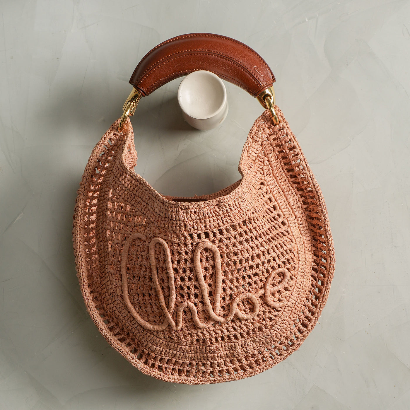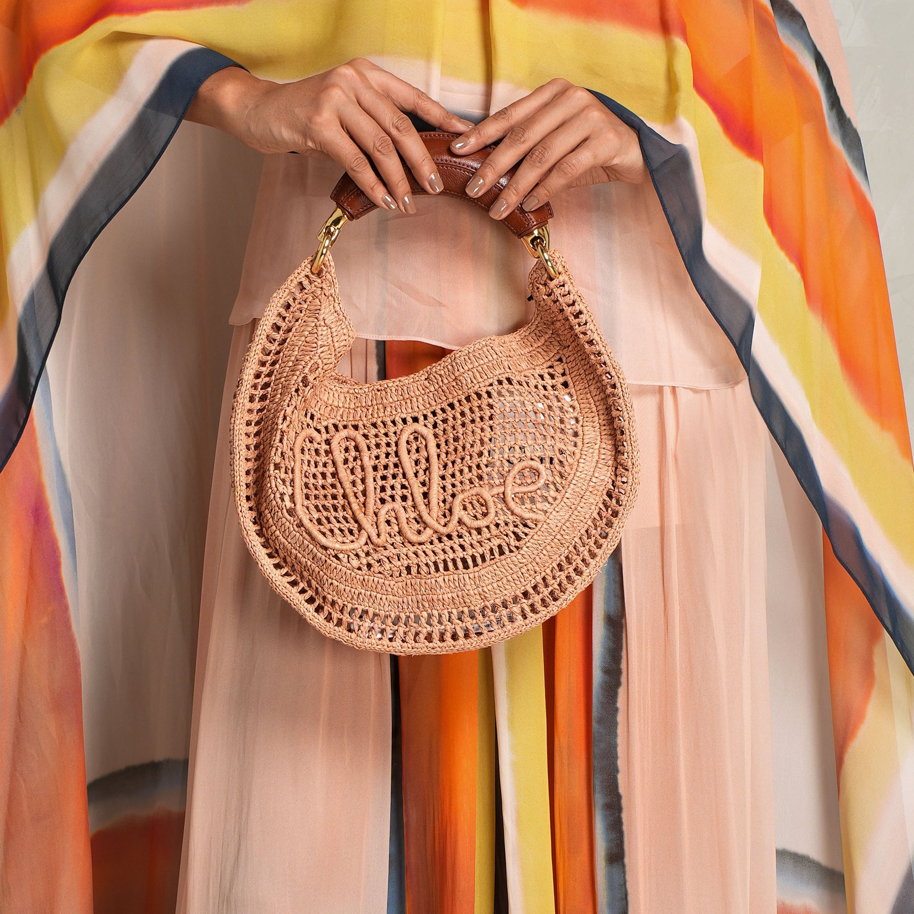 Shaped by the hands of a single artisan over 4.5 days, the Summer Banana Hobo Bag from Chloé is a union of raffia and calfskin, brought to life in collaboration with Made For A Woman. Its graceful, curved form and banana-inspired handle evokes effortlessness, while the handwritten signature whispers of Chloé's legacy. Presented in a serene beige tone, it is a true ode to craftsmanship.