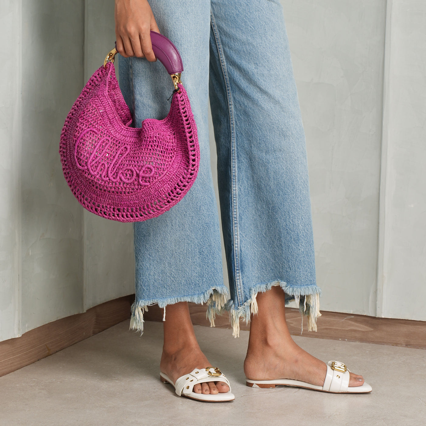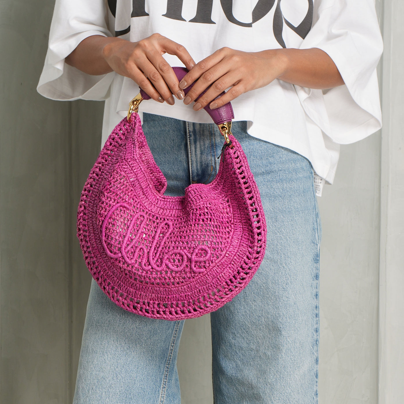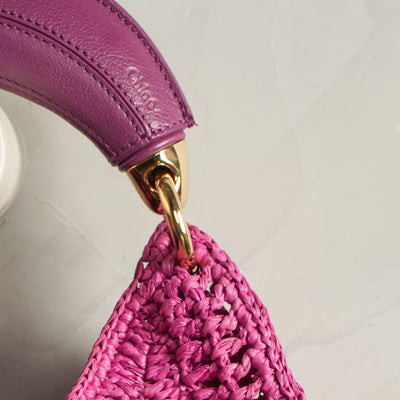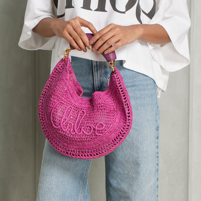 The Summer Banana Hobo Bag from Chloé brings together natural raffia and supple calfskin, shaped by the hands of one artisan in partnership with Made For A Woman. Its fluid, curved form and playful banana-shaped handle capture the spirit of modern summer ease. In radiant bright pink, this bag offers a daring twist to a classic design.