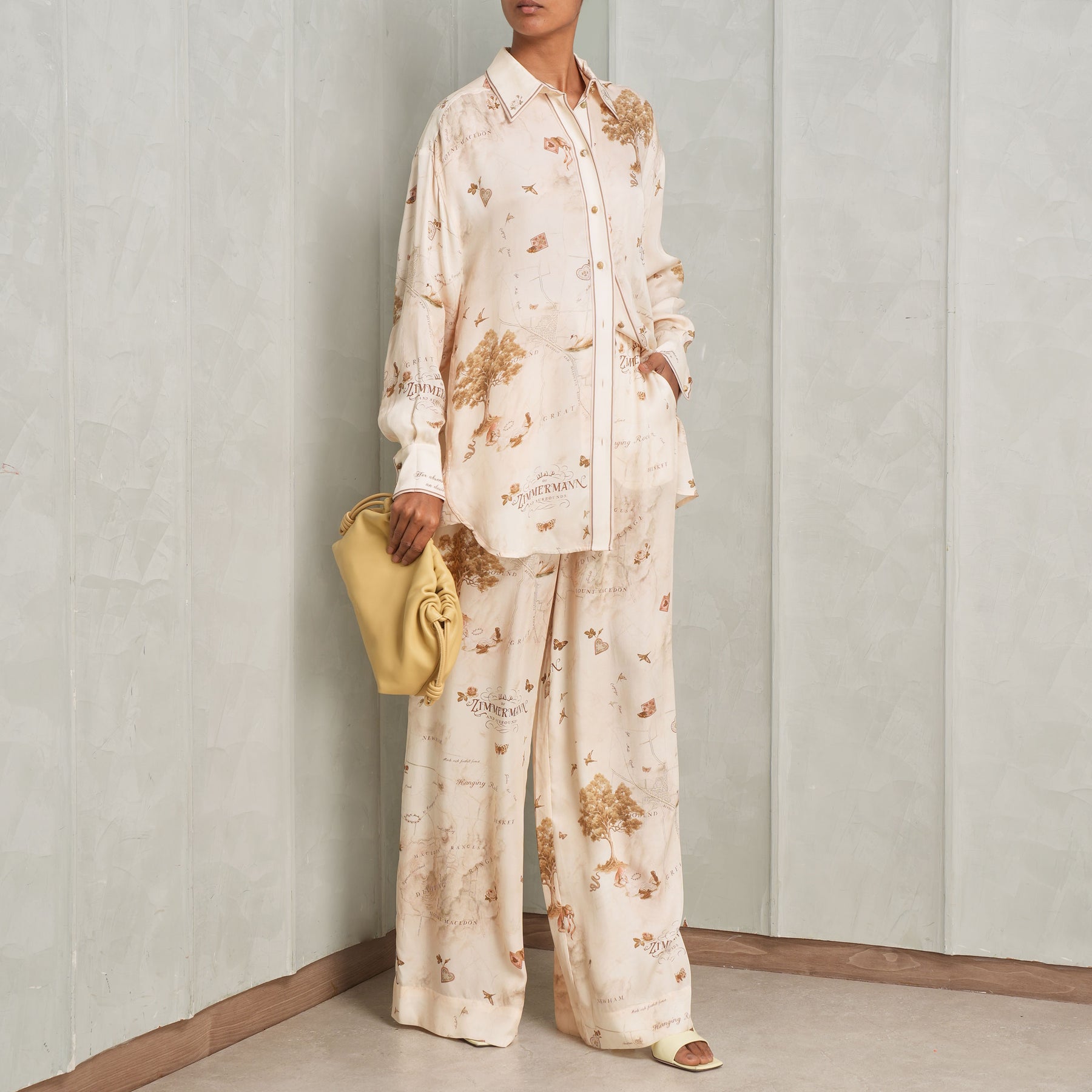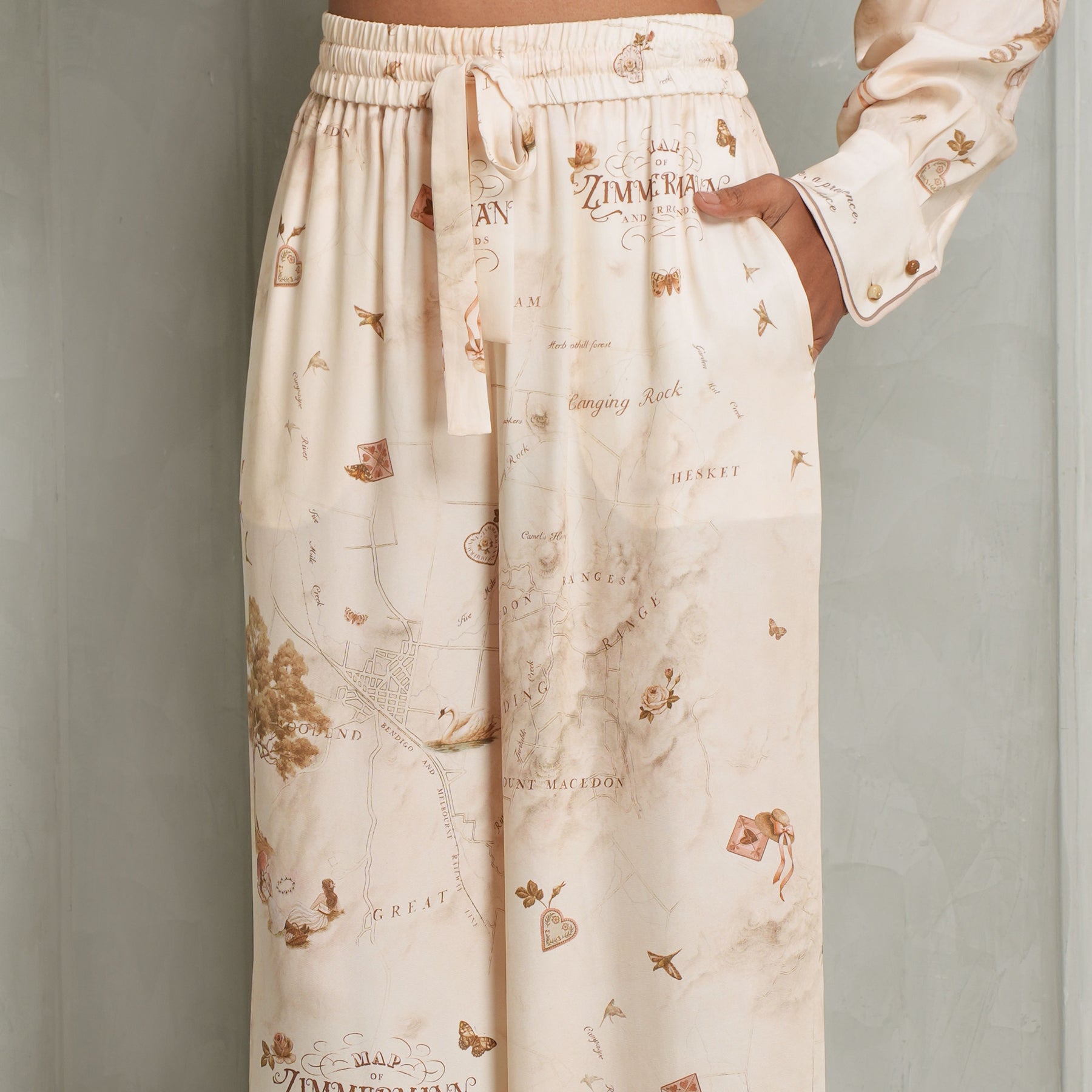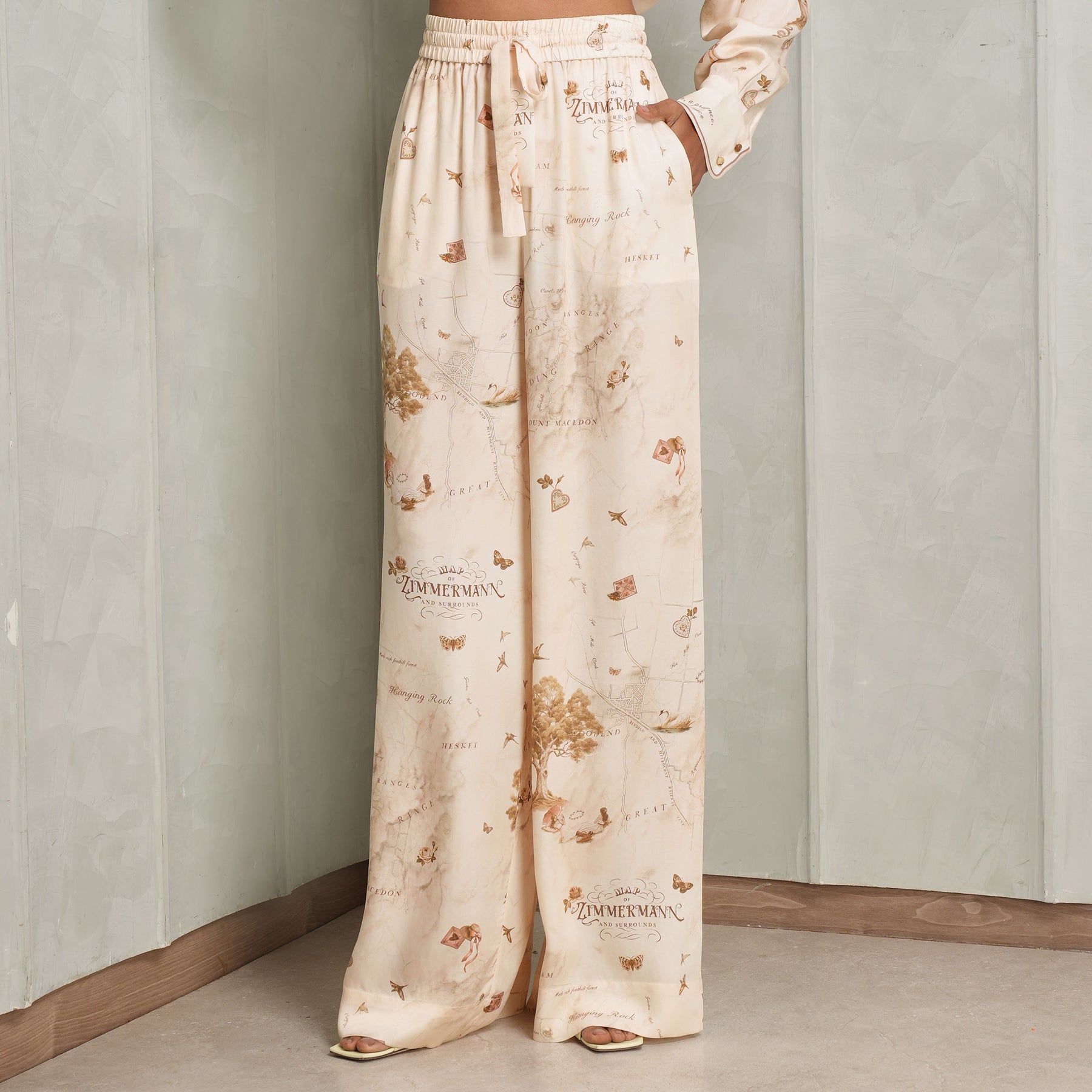 Laid-back refinement, redefined - meet the Zimmermann Track Pant. Crafted in cupro, these high-rise track pants feature a shirred elastic waistband with a self-tie drawstring and side seam pockets. The wide-leg silhouette drapes fluidly to a loose hem, offering effortless ease in a slip-on style. Style this staple piece with...
